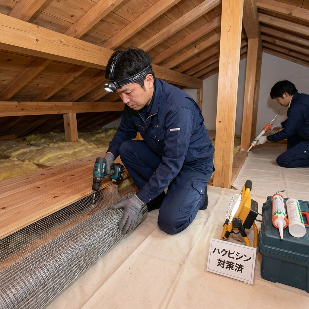 捕獲だけでなく、侵入口の完全封鎖、糞尿の清掃、殺菌消毒まで一貫して対応してくれる業者を選びましょう。中途半端な対策では再侵入のリスクが残ります。