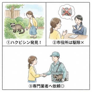 ⚠️ ただし、自治体の対応には時間がかかる場合があります。繁忙期や長期休暇中は1ヶ月以上待たされることもあるため、被害が深刻な場合は専門業者への依頼も検討しましょう。