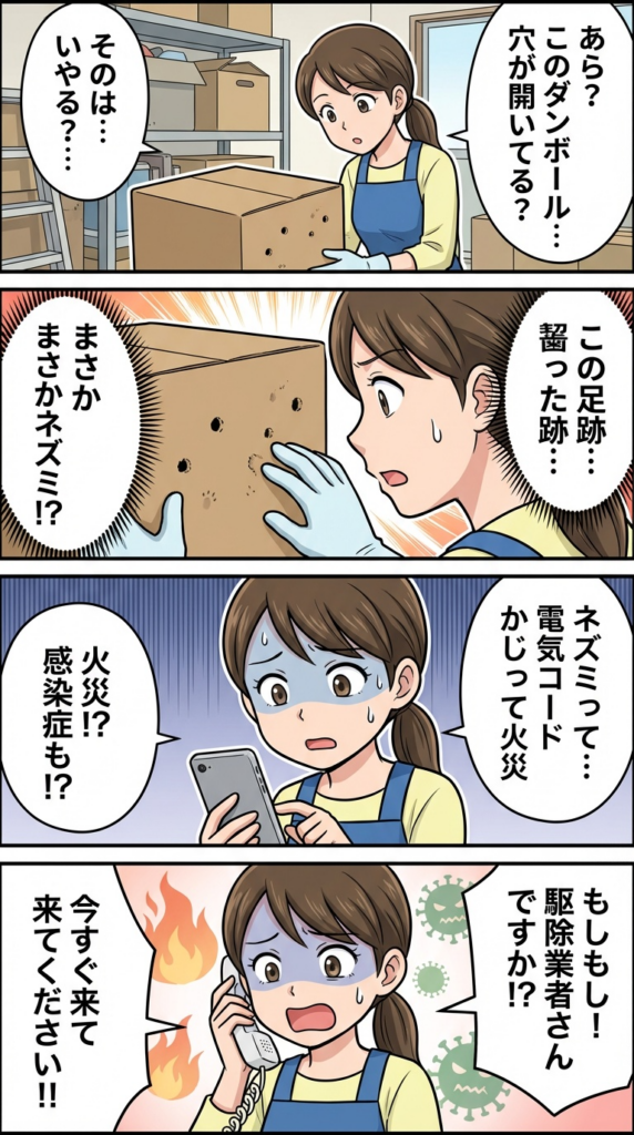 え、じゃあダンボールで保管してる場所って、ネズミにとって「巣作りし放題」の天国みたいなもの!?