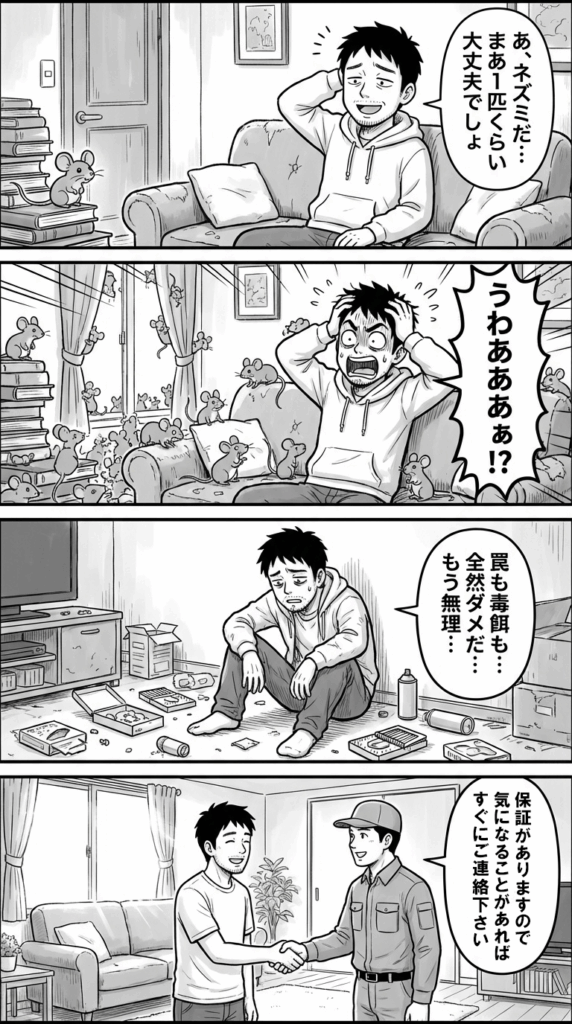 ネズミ駆除は、「駆除して終わり」じゃダメです。再発防止まで徹底しないと、また同じことの繰り返しになります。