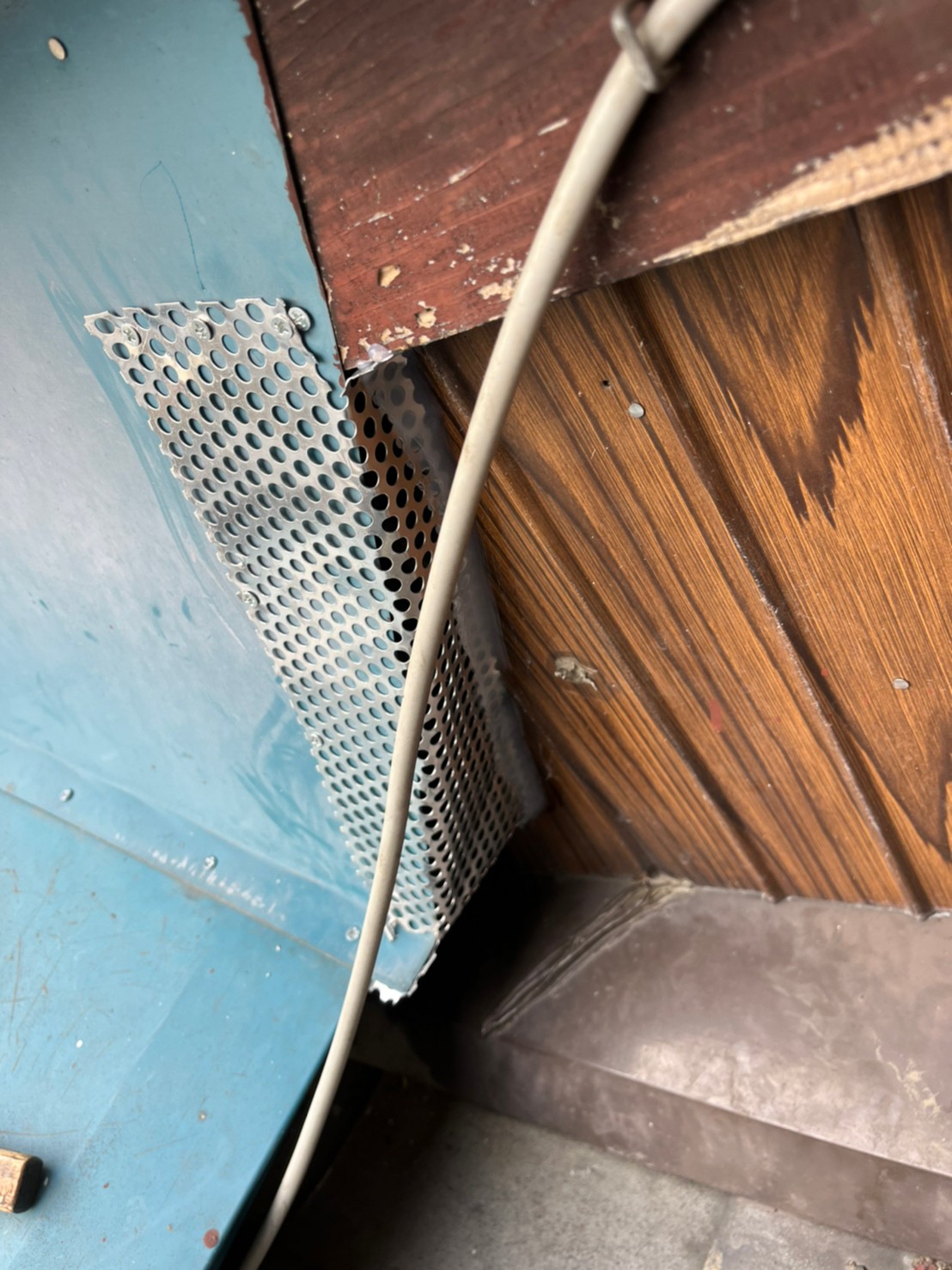続いて、パンチングメタルや金網、コーキング剤などを用いて、あらゆる侵入経路を封鎖していきます。これによりアライグマに限らず、他の害獣の再侵入も防ぐことができます。