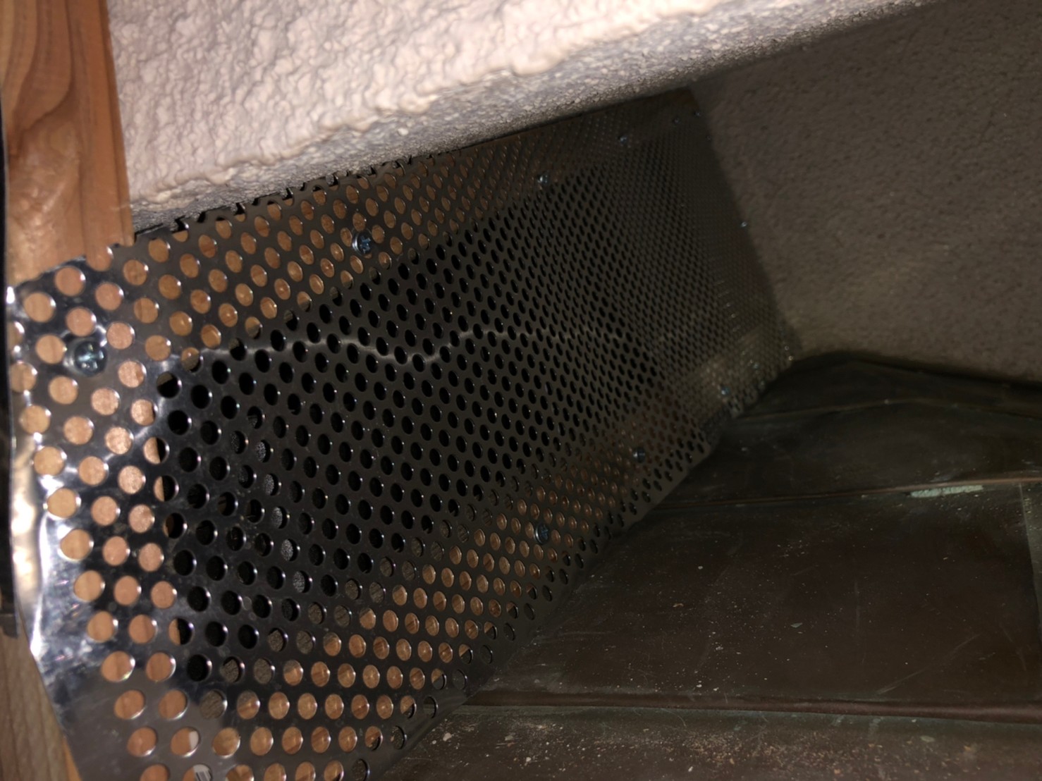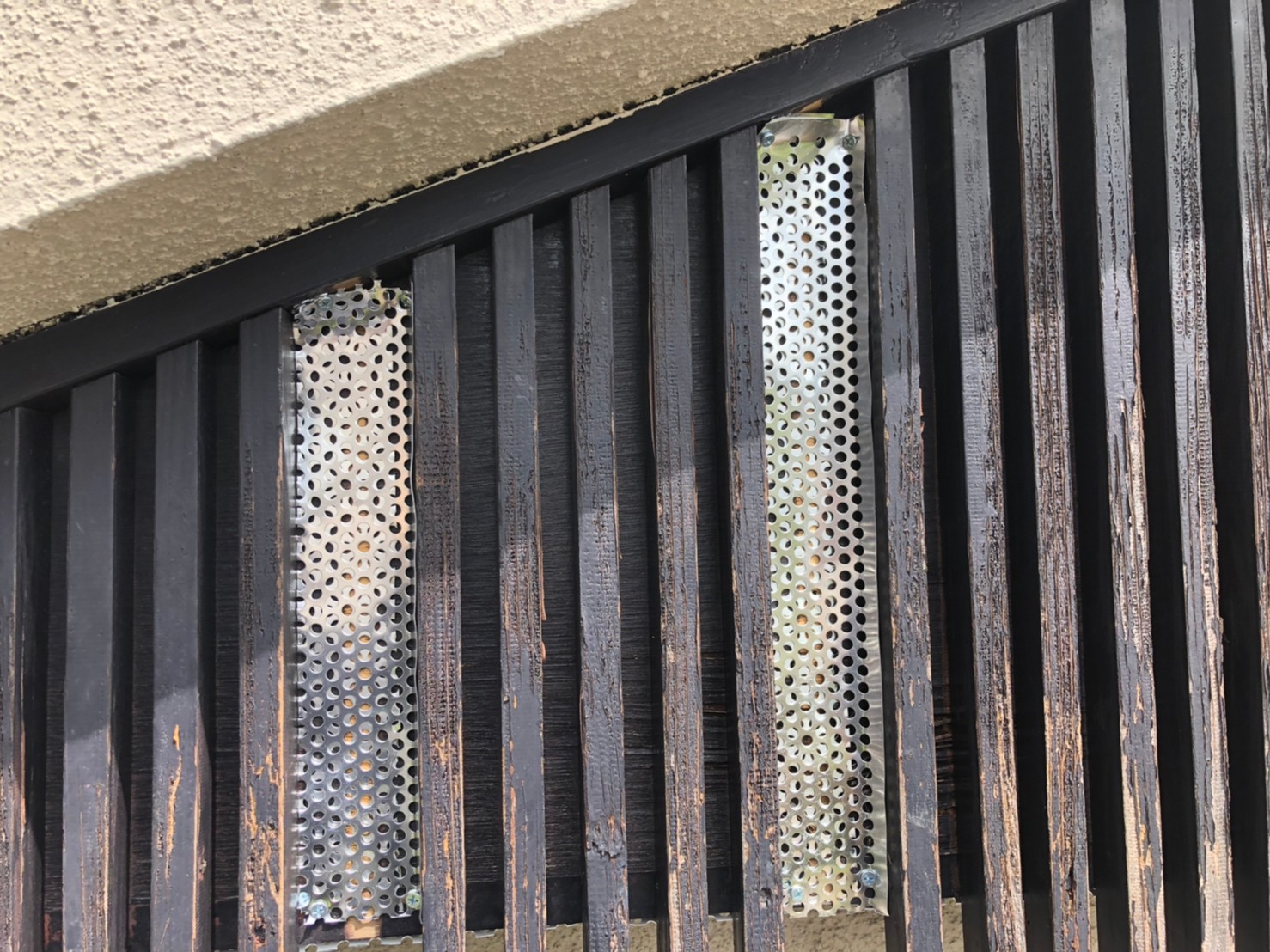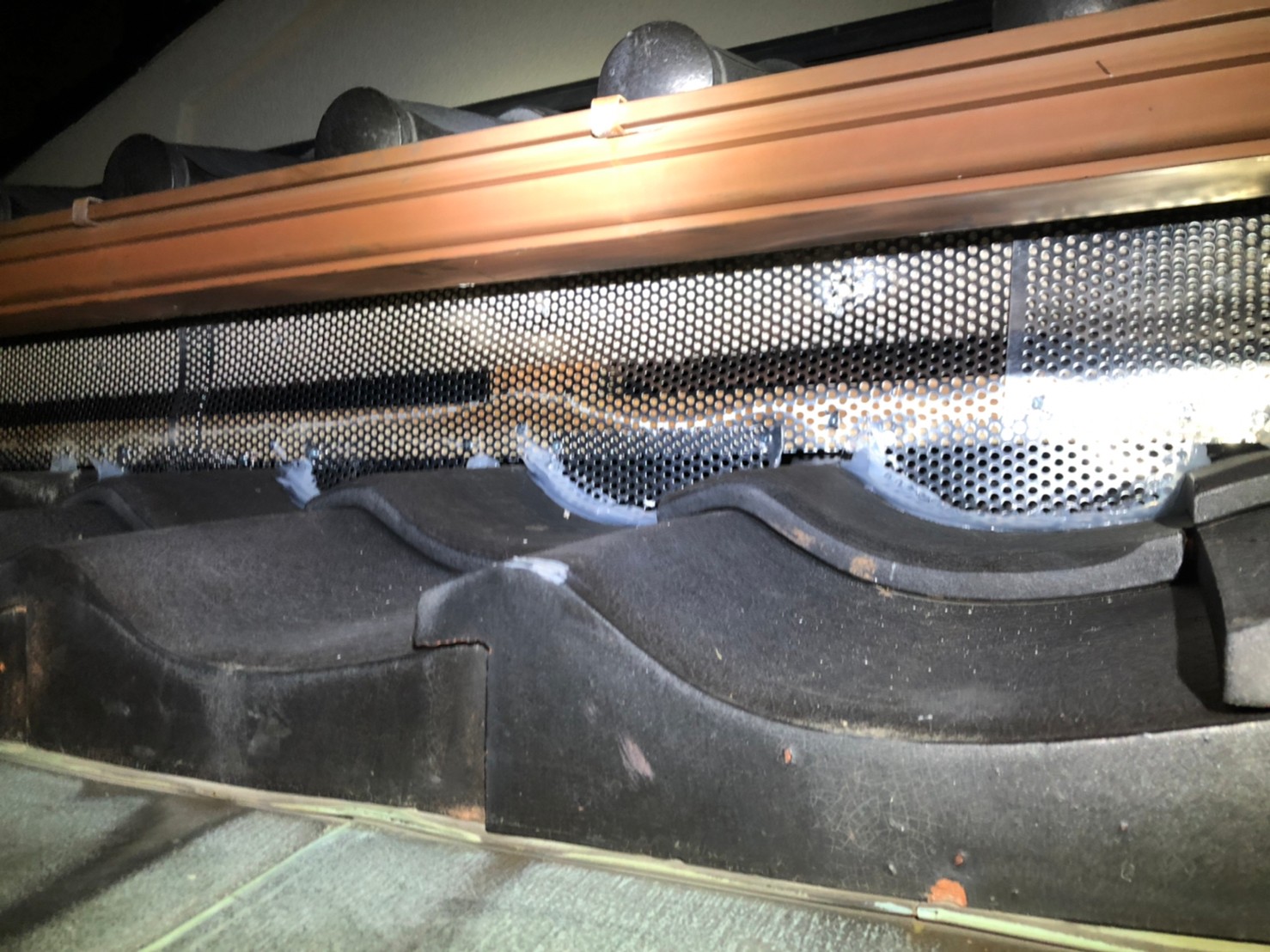 続いて、パンチングメタルや金網、コーキング剤などを用いて、あらゆる侵入経路を封鎖していきます。これによりアライグマに限らず、他の害獣の再侵入も防ぐことができます。