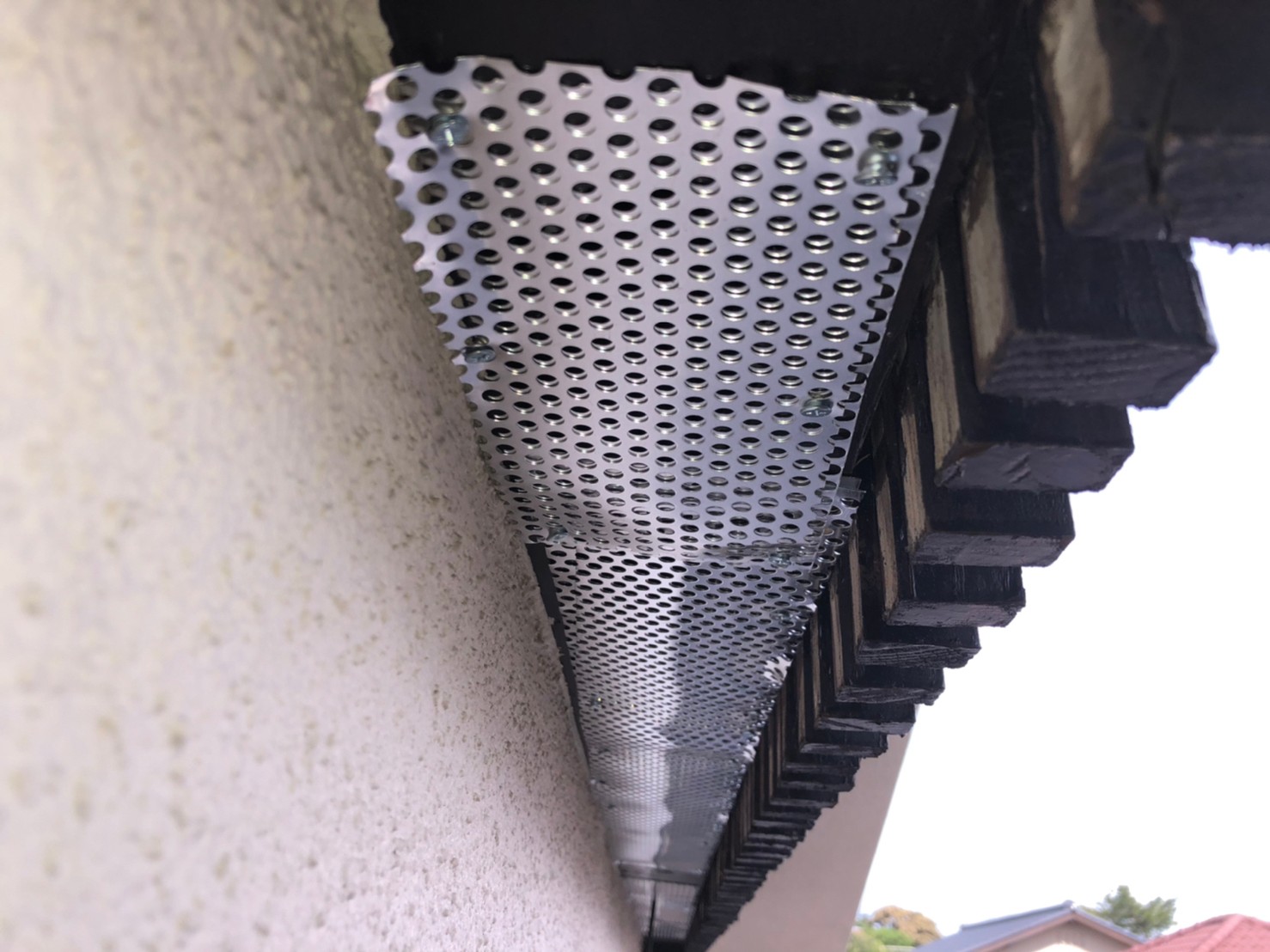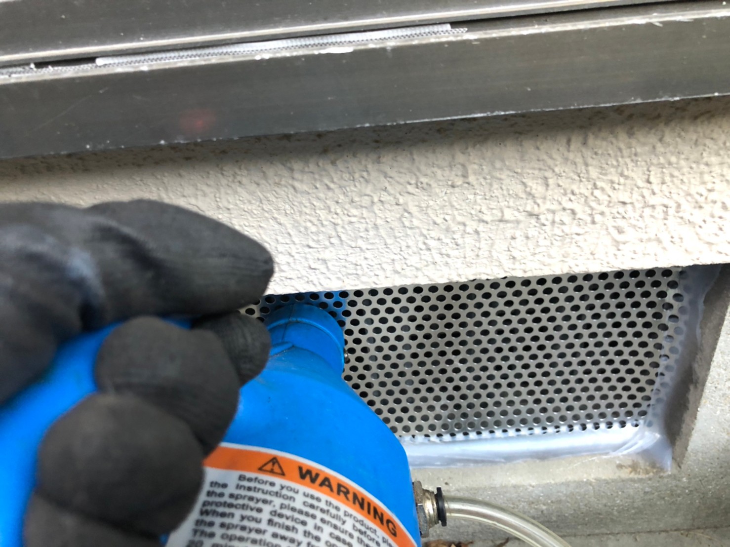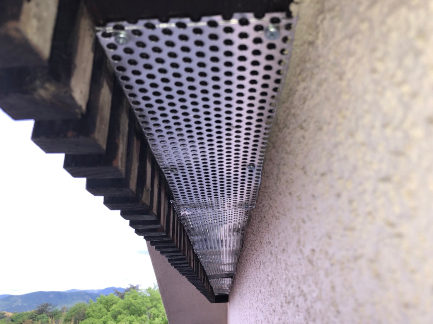 続いて、パンチングメタルや金網、コーキング剤などを用いて、あらゆる侵入経路を封鎖していきます。これによりアライグマに限らず、他の害獣の再侵入も防ぐことができます。
