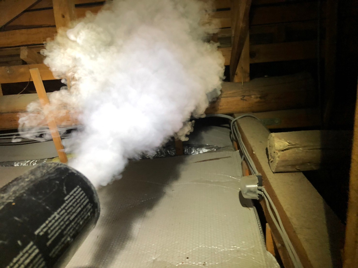 まずは、燻煙剤を使って屋内に潜んでいるアライグマを追い出します。