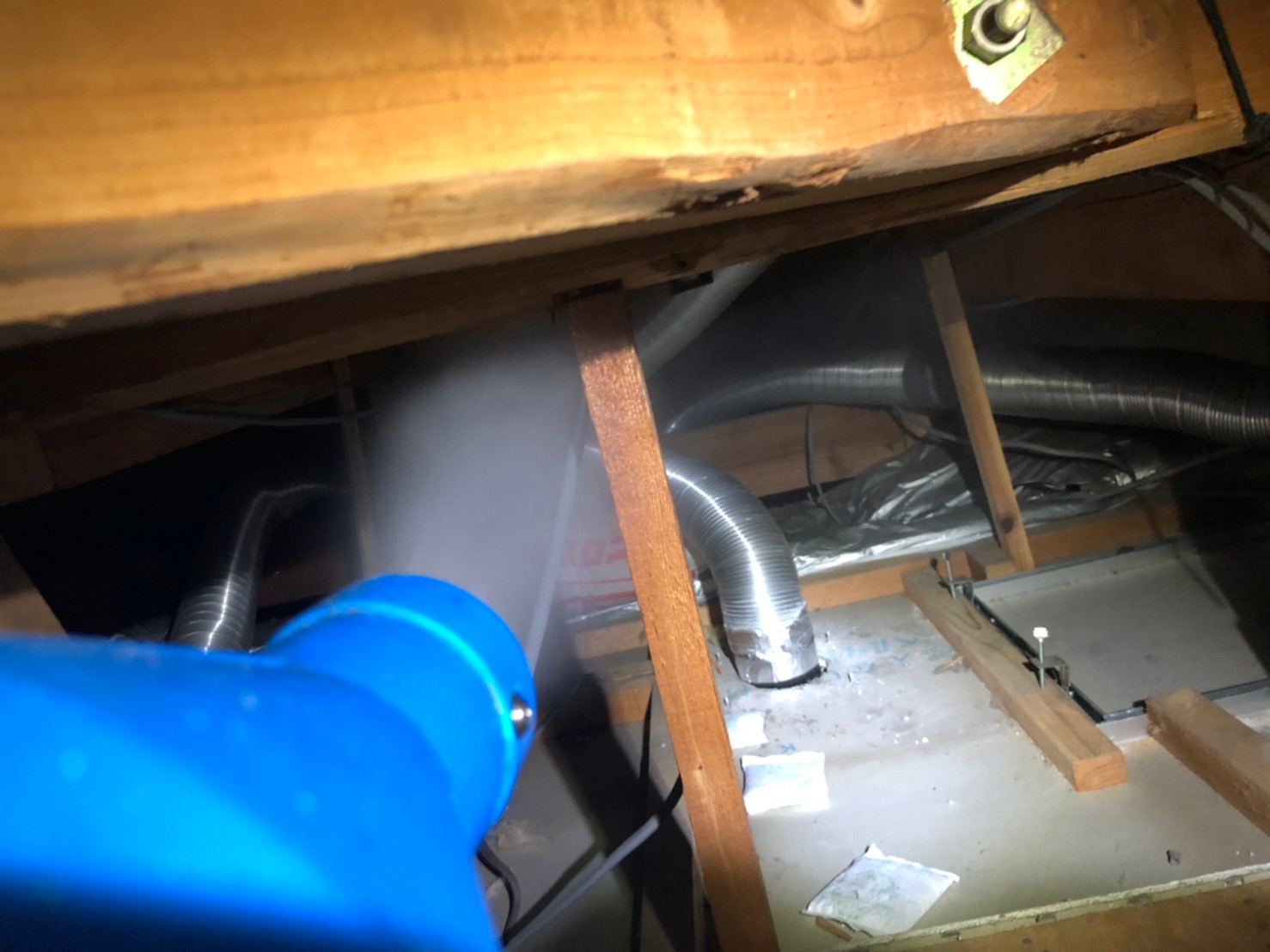 屋根の隙間や床下通風口、エアコン配管の隙間、外壁の隙間といった場所から、アライグマが建物内へ侵入しており、耳障りな鳴き声や糞尿による天井の損傷、ノミ・ダニ被害などの理由からお問い合わせをいただきました。