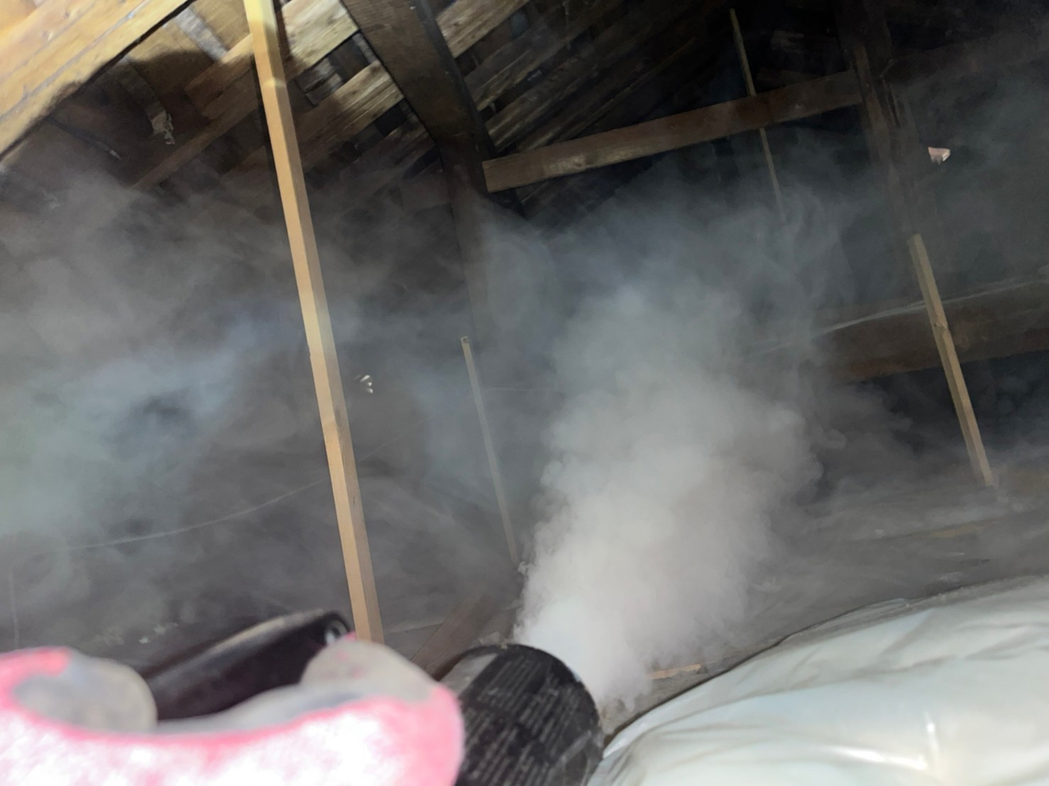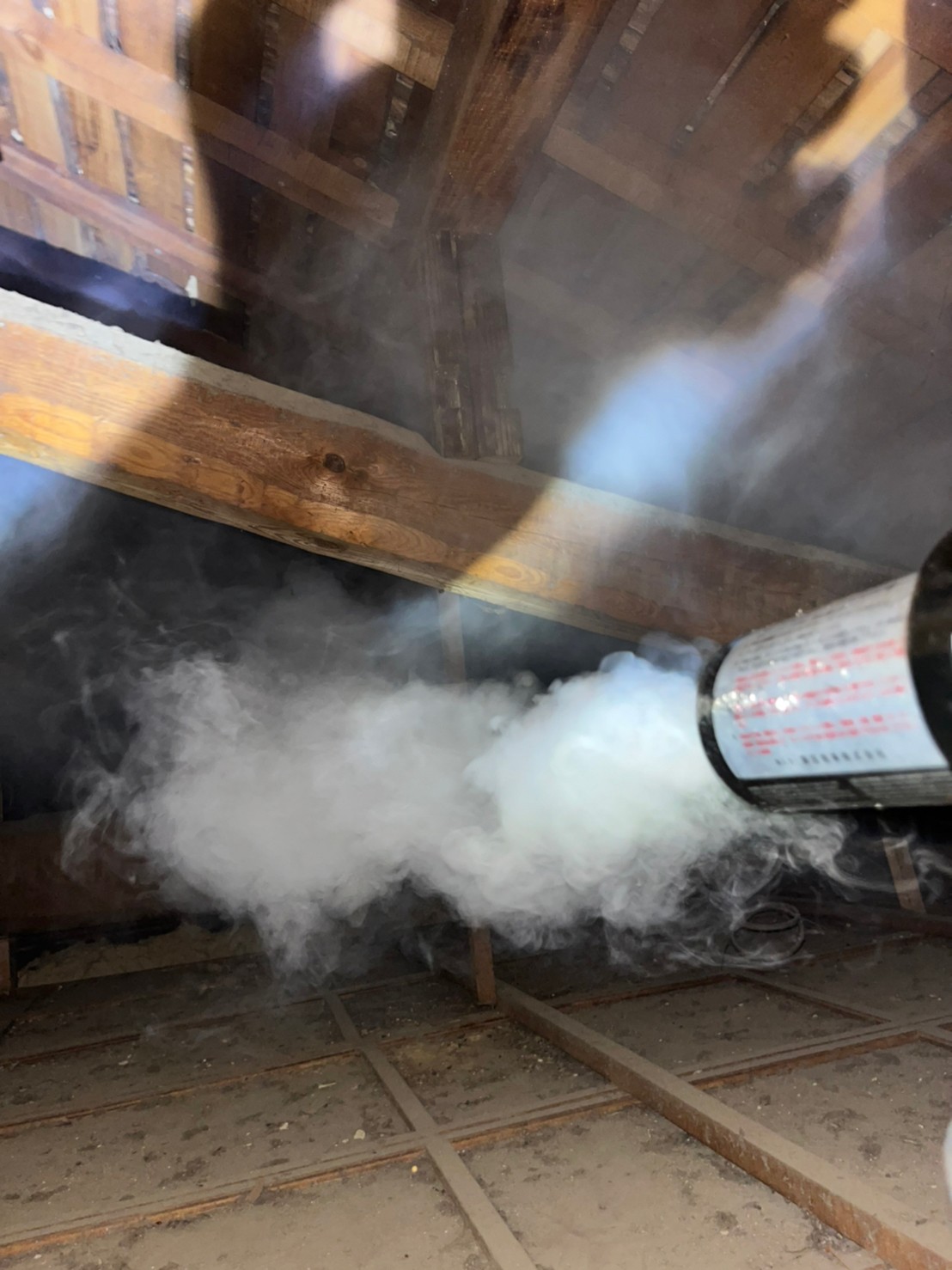 まずは、燻煙剤と呼ばれる薬剤を天井裏や床下に投入することで、ハクビシンを追い出していきます。