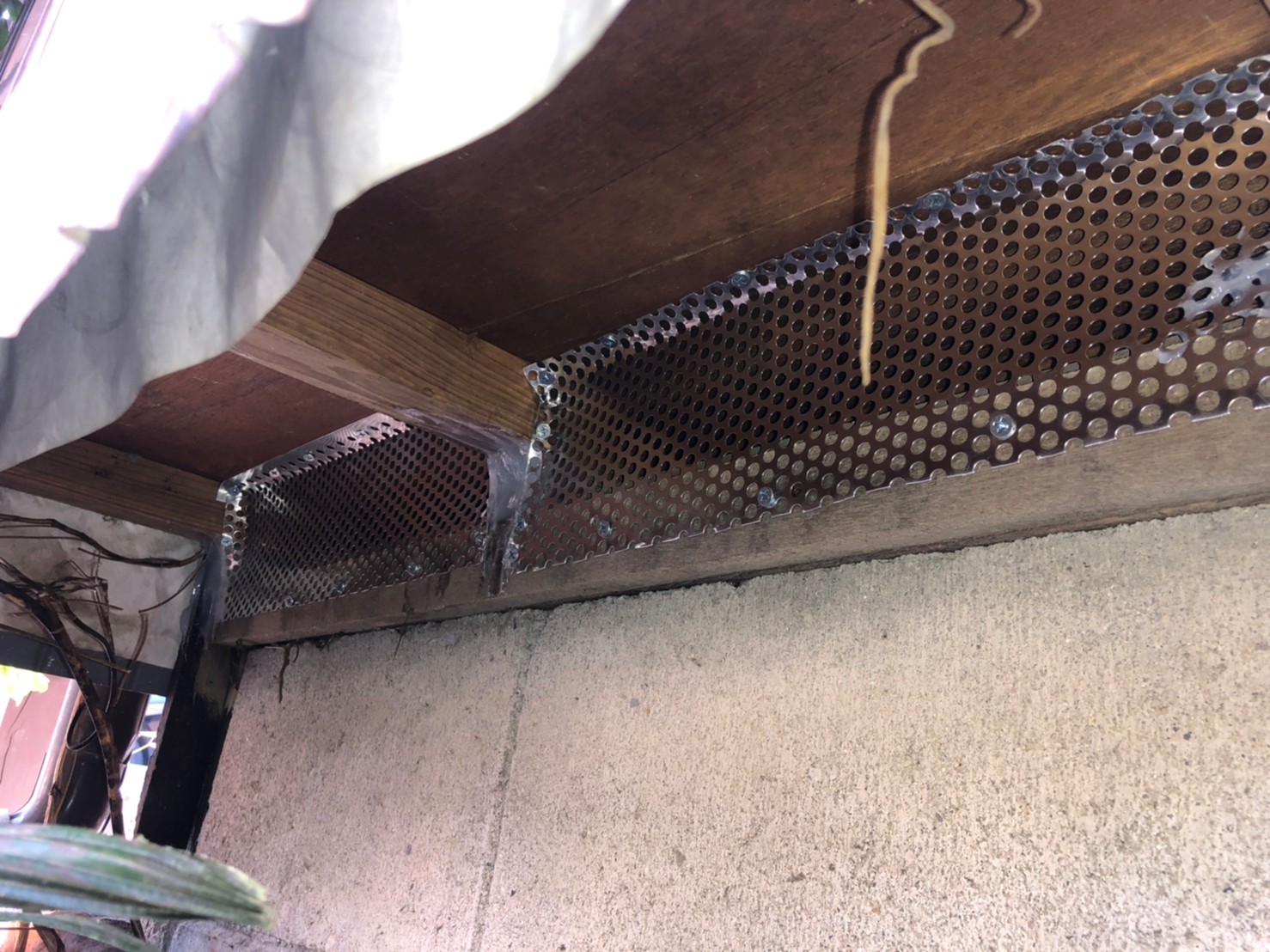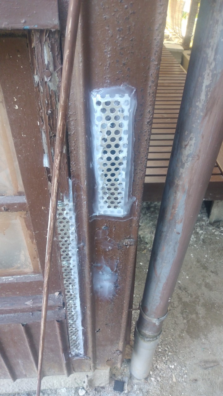 続いて、パンチングメタルや金網、コーキング剤などを用いて、あらゆる侵入経路を封鎖していきます。これによりイタチに限らず、他の害獣の再侵入も防ぐことができます。