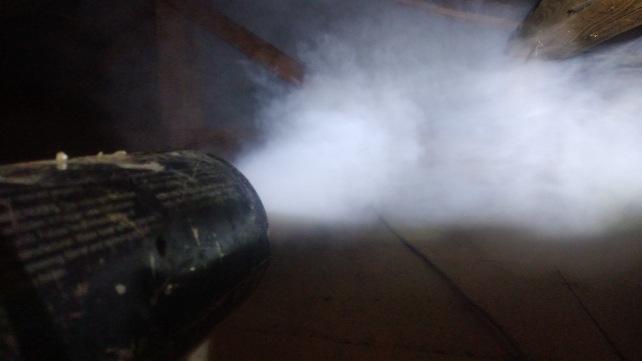 まずは、燻煙剤と呼ばれる薬剤を天井裏や床下に投入することで、イタチを追い出していきます。