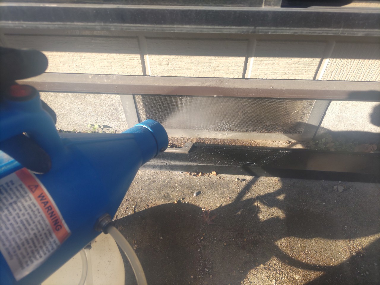 封鎖作業の後は、糞清掃や殺菌・消毒、マーキング消臭、ノミ・ダニ駆除、点検口作成といった残りの行程を順序良く行い、終了です。