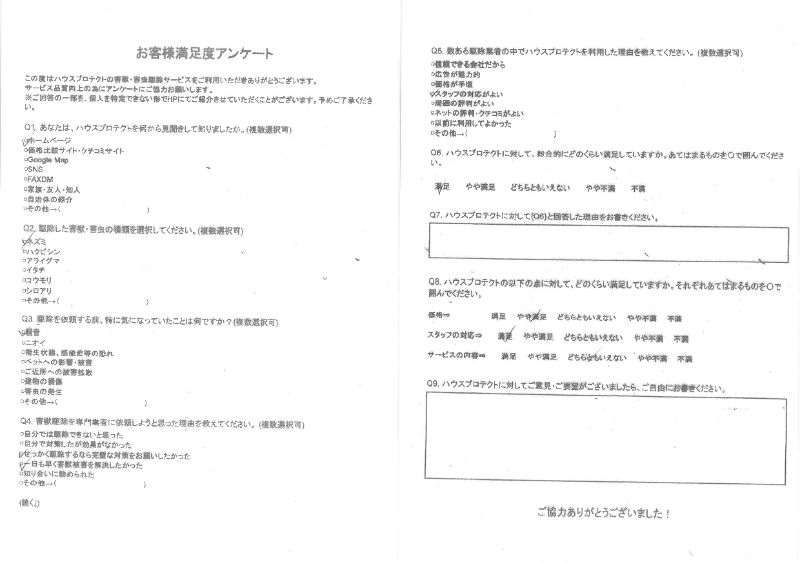 ネズミ被害にお困りでいらっしゃったお客様からアンケートのご回答をいただきました。