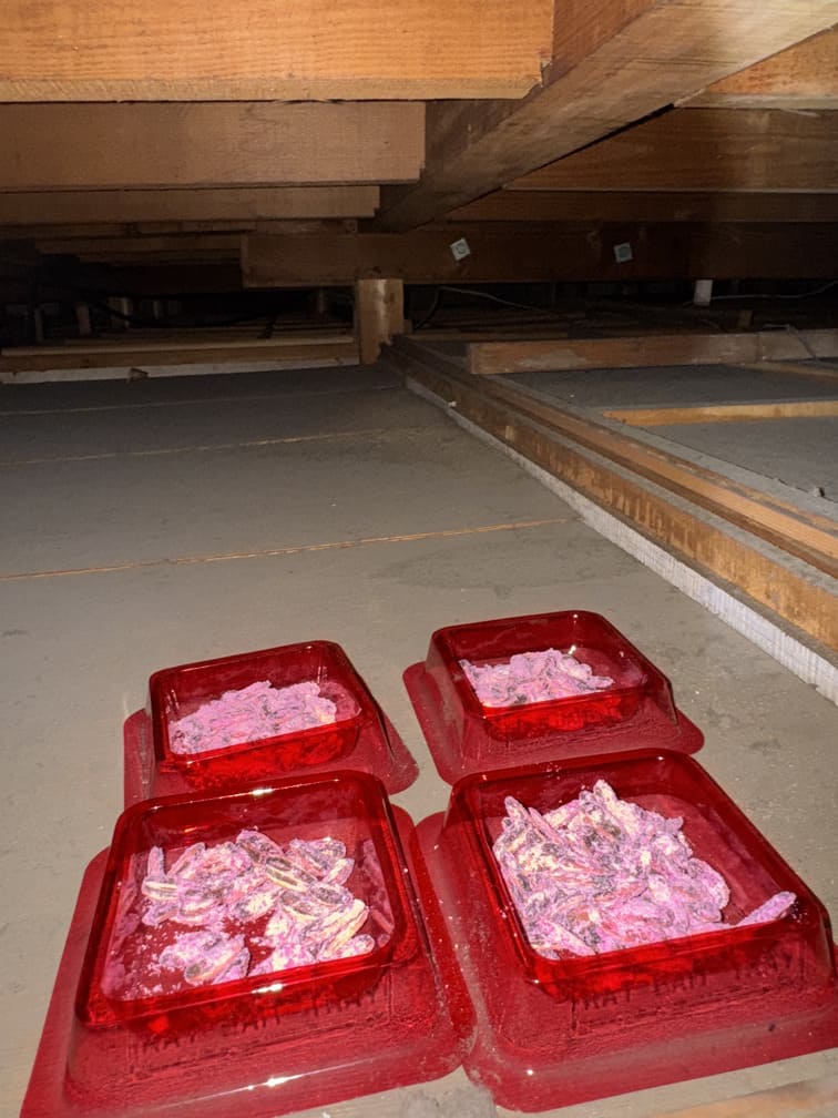 ネズミの主な侵入経路としては、床下から2階の天井裏にかけて広範囲にわたる箇所が確認されました。お客様からは、糞尿による悪臭やノミ・ダニ被害、衛生面での不安といった切実なお悩みでご相談をいただきました。