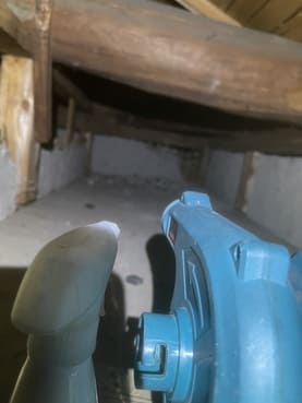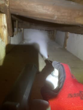 • ①燻煙剤を使って1階天井裏などに潜んでいるネズミを追い出します