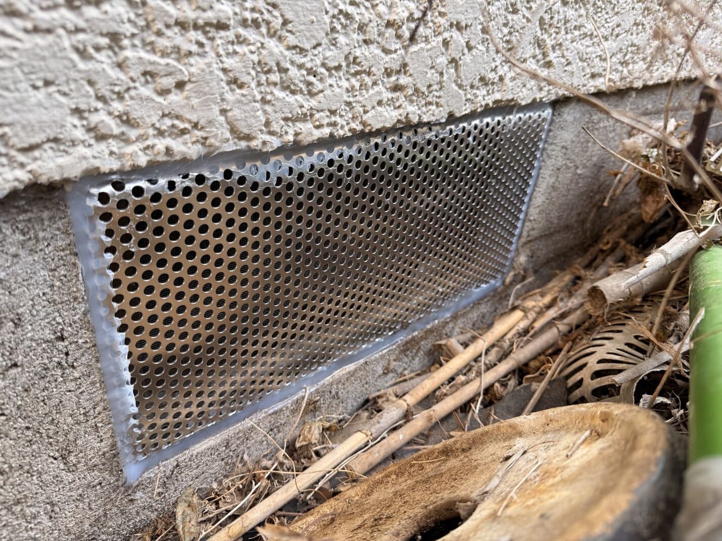• ②パンチングメタルや金網、コーキング剤などで侵入経路を徹底的に封鎖します。