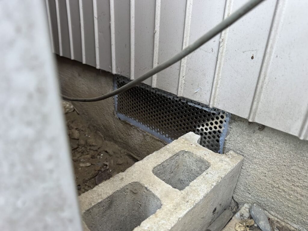 • ②パンチングメタルや金網、コーキング剤などで侵入経路を封鎖します