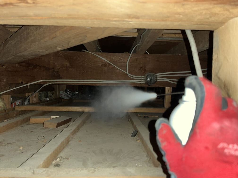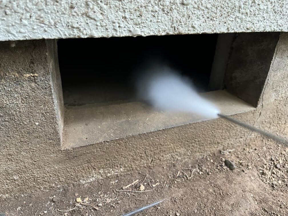 • ①床下や天井裏に潜んでいるネズミを薬剤で追い出します