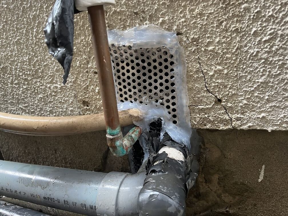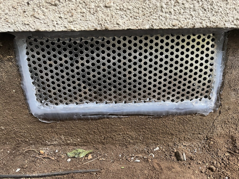 • ②パンチングメタルや金網、コーキング剤などを用いて、すべての侵入経路を徹底的に封鎖します