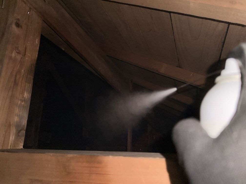 • ①まずは燻煙剤を使い、床下や天井裏に潜んでいるネズミを追い出します。