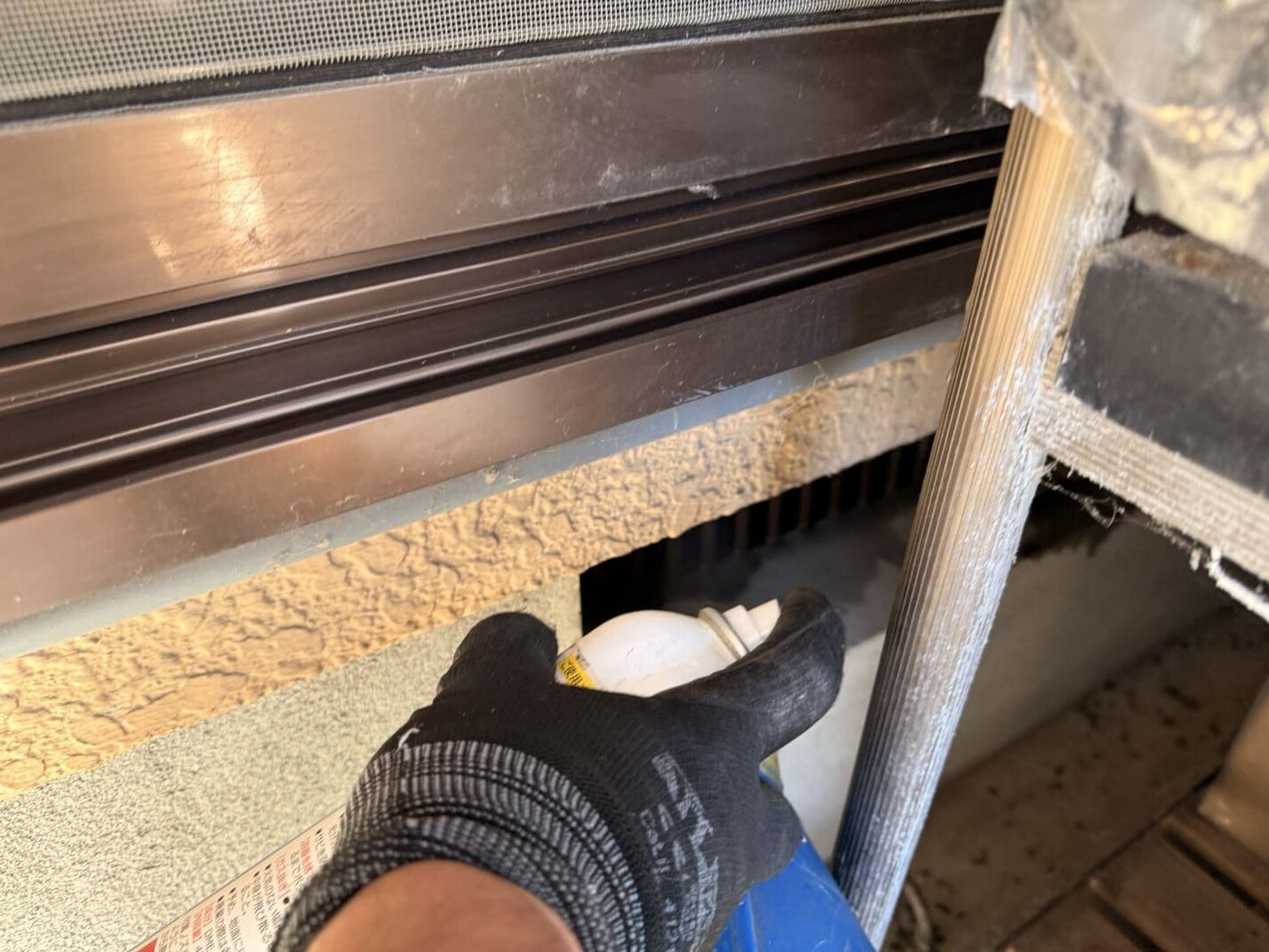 • ②パンチングメタルや金網、コーキング剤などで、すべての侵入経路を徹底的に封鎖します。