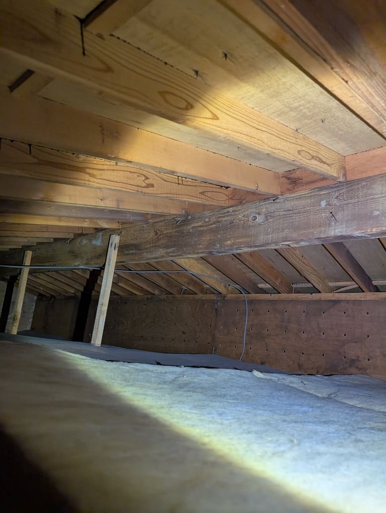 ネズミの主な侵入経路を調査したところ、2階天井裏から床下にかけての広範囲にわたる通り道が確認されました。お客様からは、糞尿による不快な悪臭やノミ・ダニ被害、さらには衛生面での強い不安があるとのことで、早急に対応させていただきました。