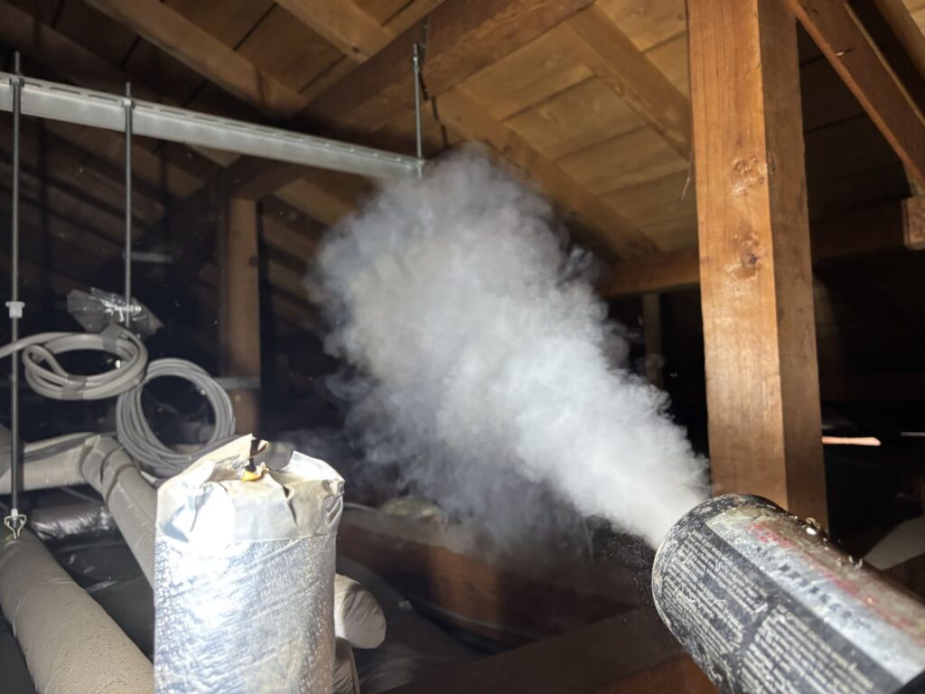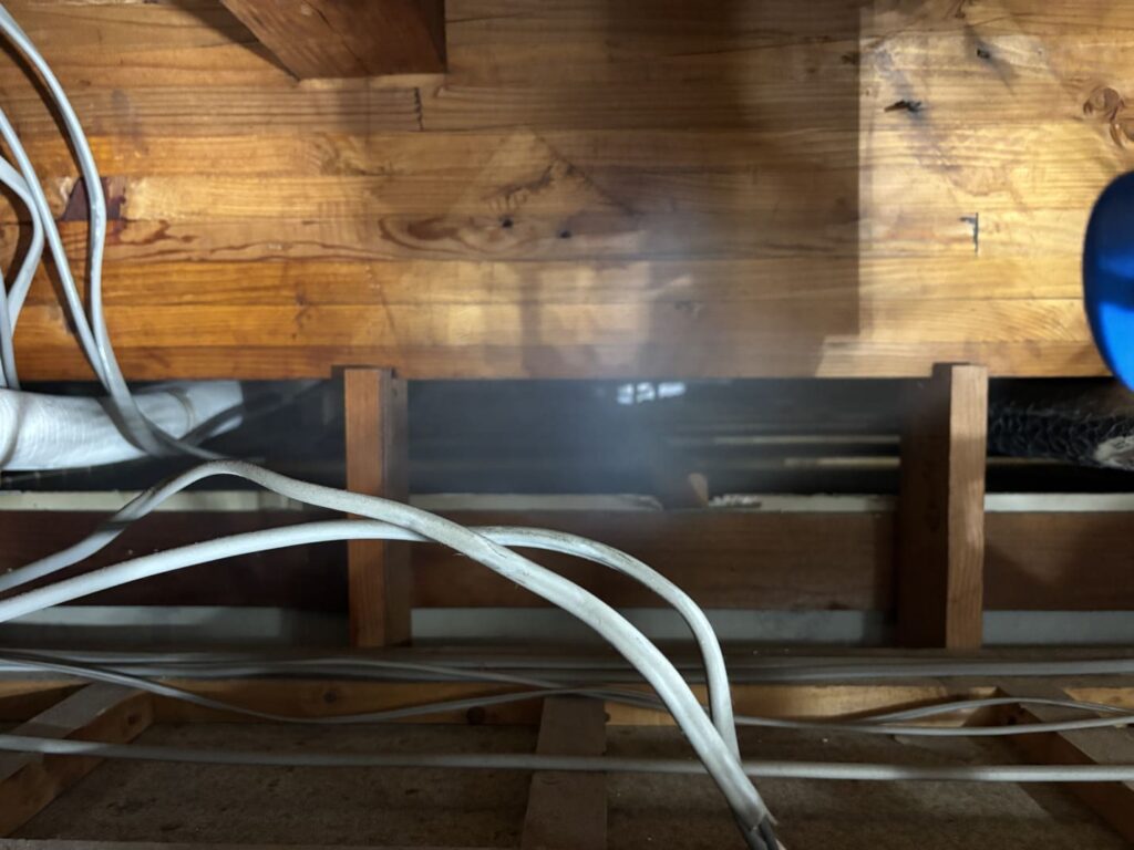 • ①燻煙剤で床下や天井裏に潜んでいるネズミを追い出す