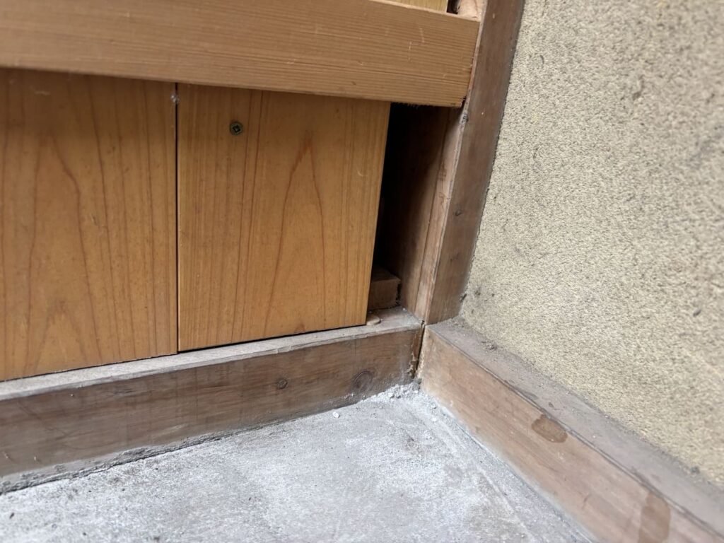 ネズミの主な侵入経路としては、床下から2階の天井裏にかけて複数の箇所が確認されました。お客様からは、糞尿による悪臭やノミ・ダニ被害、衛生面での不安といった切実なお悩みによりお問い合わせをいただきました。