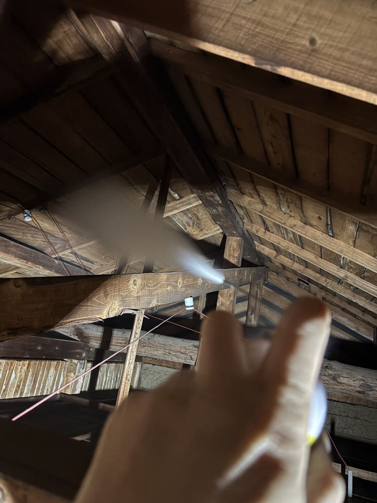 - ①床下や天井裏に潜んでいるネズミを、薬剤を用いて外へ追い出す