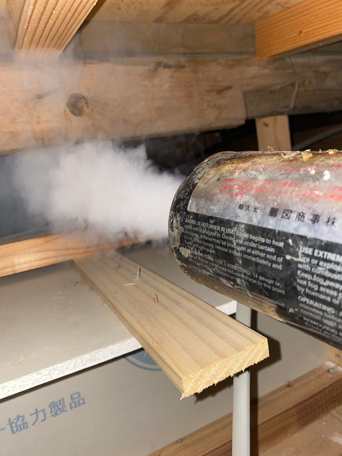 まずは、燻煙剤と呼ばれる薬剤を天井裏や床下に投入することで、ネズミを追い出していきます。