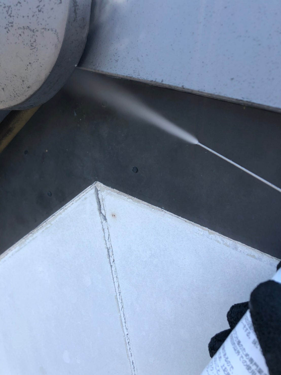 続いて、コウモリの再侵入を防ぐために、パンチングメタルや金網、コーキング剤などを用いて侵入経路の封鎖を行います。
