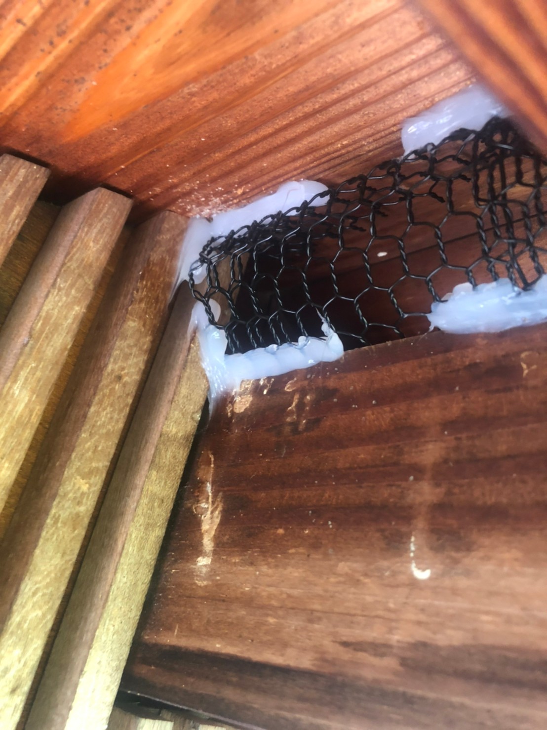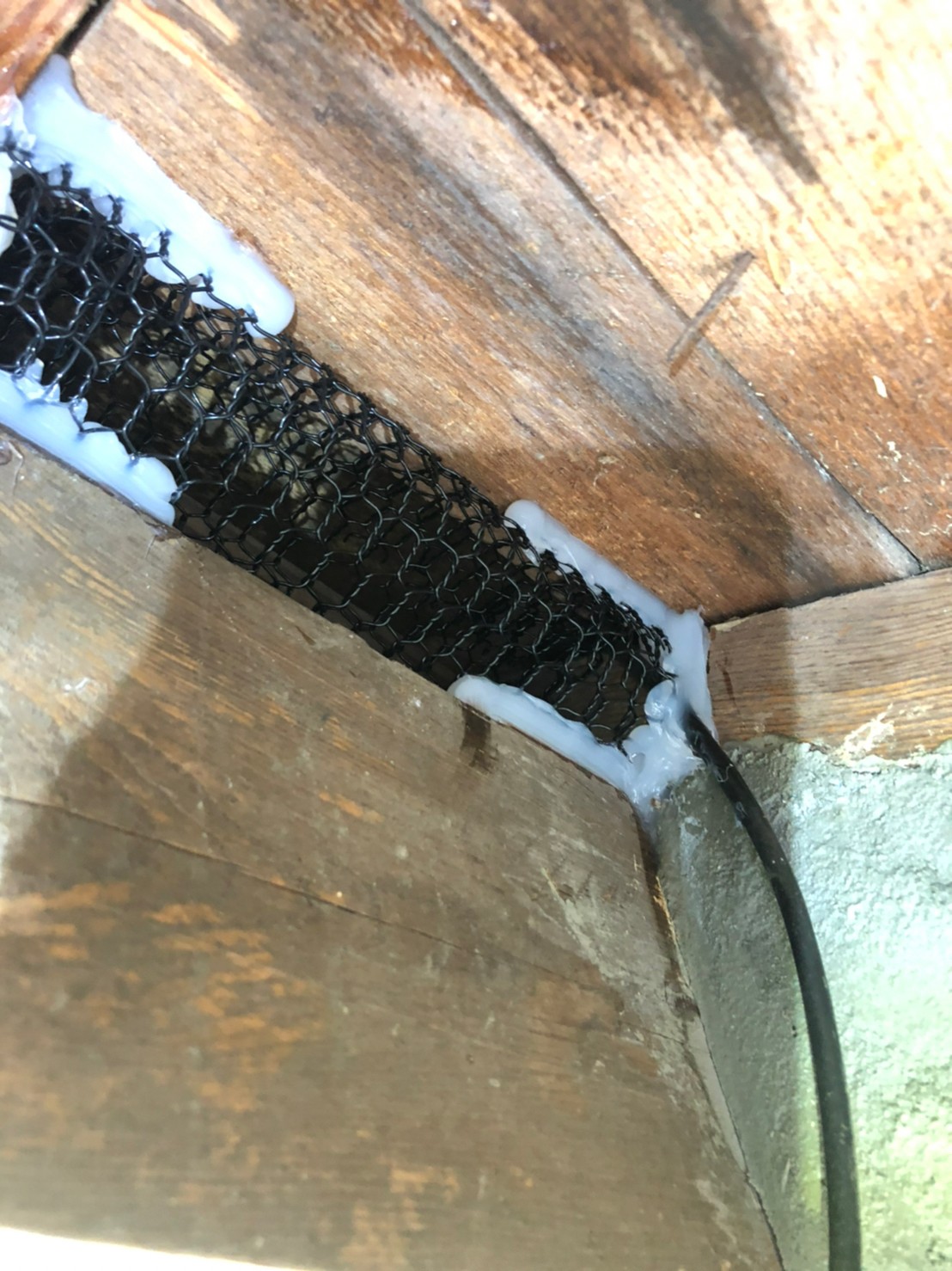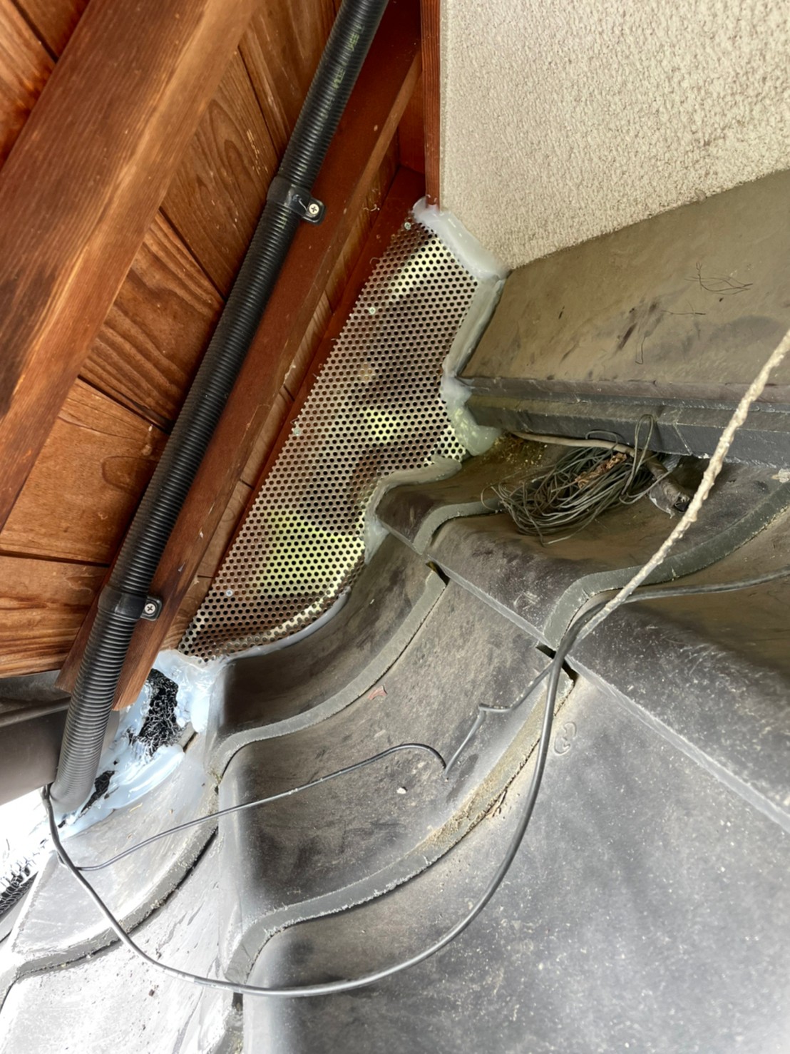 続いて、パンチングメタルや金網、コーキング剤などを用いて、あらゆる侵入経路を封鎖していきます。これによりイタチに限らず、他の害獣の再侵入も防ぐことができます。