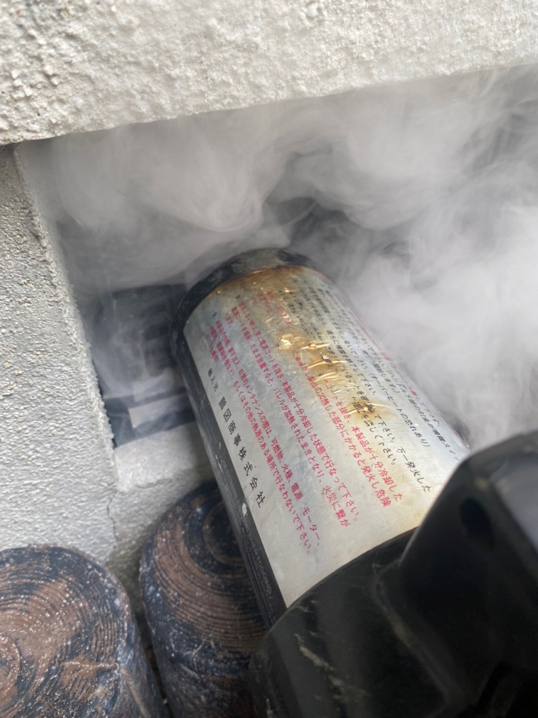 まずは、燻煙剤を使って屋内に潜んでいるイタチを追い出します。