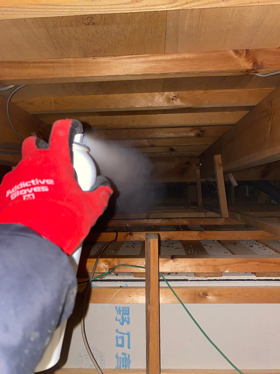 最後に、糞清掃や殺菌・消毒、マーキング消臭、ノミ・ダニ駆除、忌避剤散布・設置といった残りの作業を行い、駆除~再発防止までの工程が全て終了します。