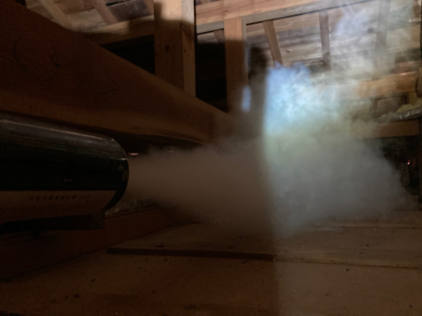 まずは、燻煙剤と呼ばれる薬剤を天井裏や床下に投入することで、アライグマを追い出していきます。