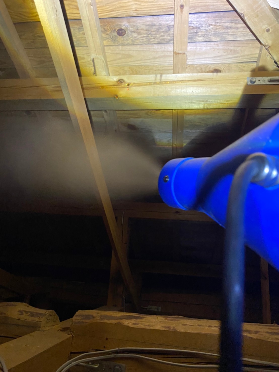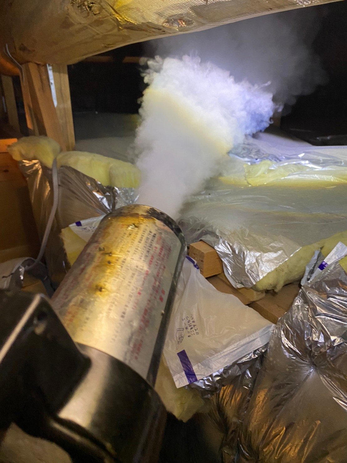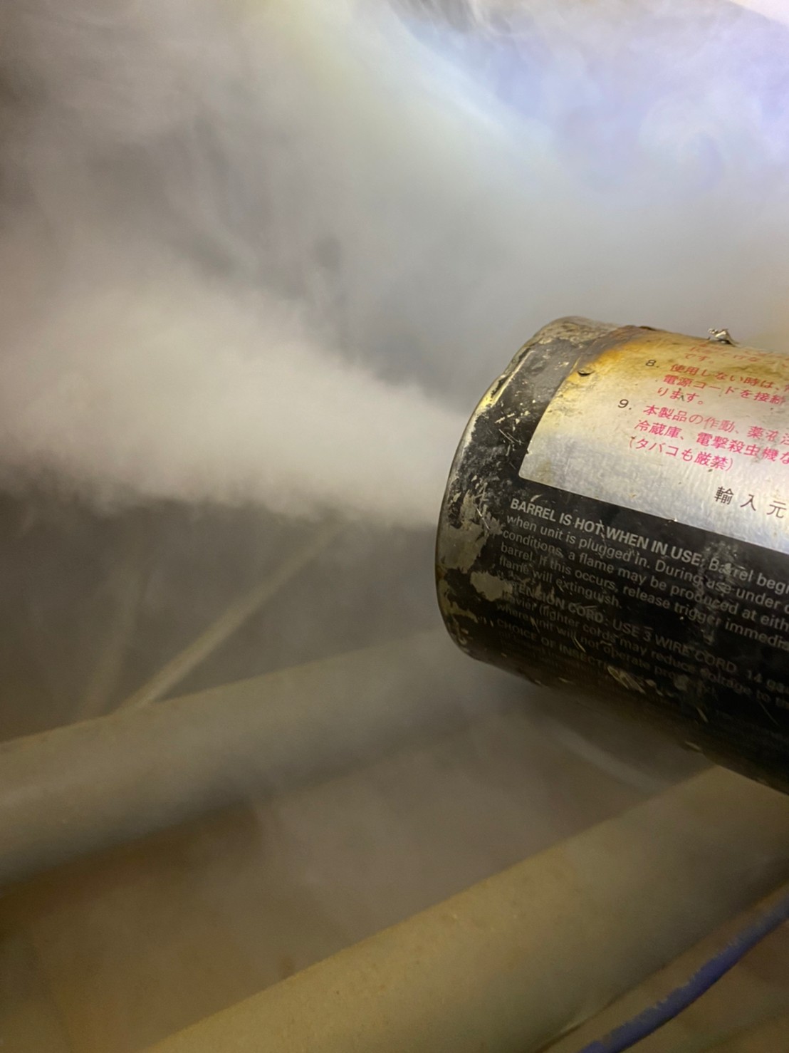 まずは、燻煙剤と呼ばれる薬剤を天井裏や床下に投入することで、コウモリを追い出していきます。