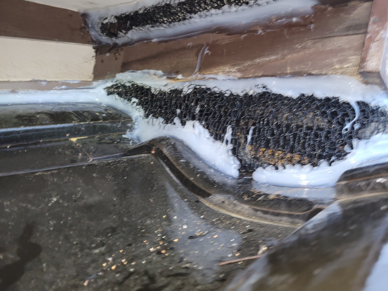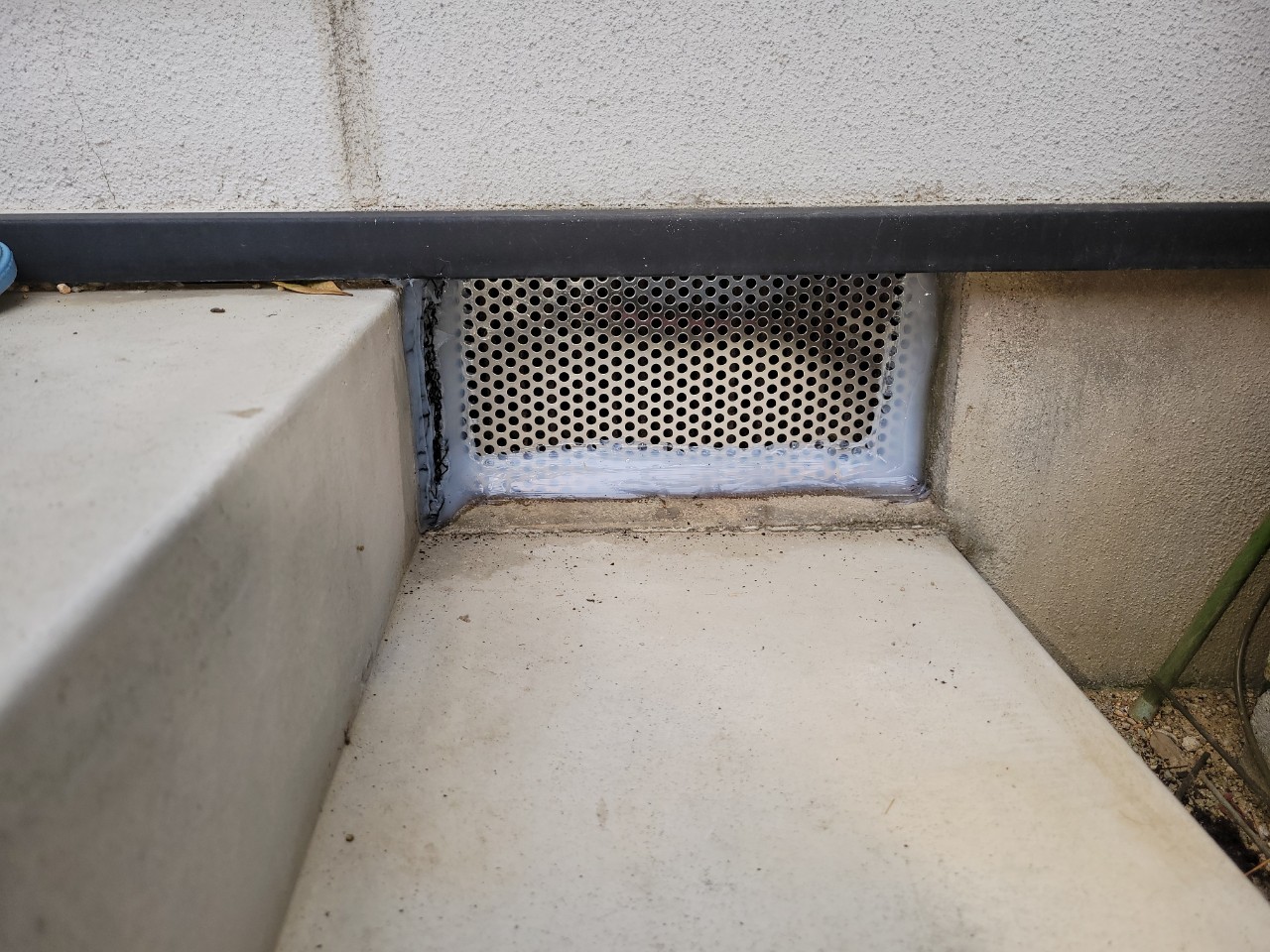 続いて、パンチングメタルや金網、コーキング剤などを用いて、あらゆる侵入経路を封鎖していきます。これによりネズミに限らず、他の害獣の再侵入も防ぐことができます。