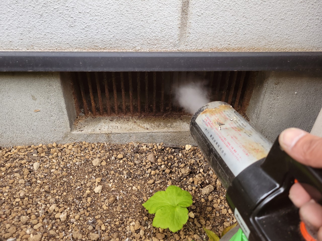 まずは、燻煙剤と呼ばれる薬剤を天井裏や床下に投入することで、ネズミを追い出していきます。