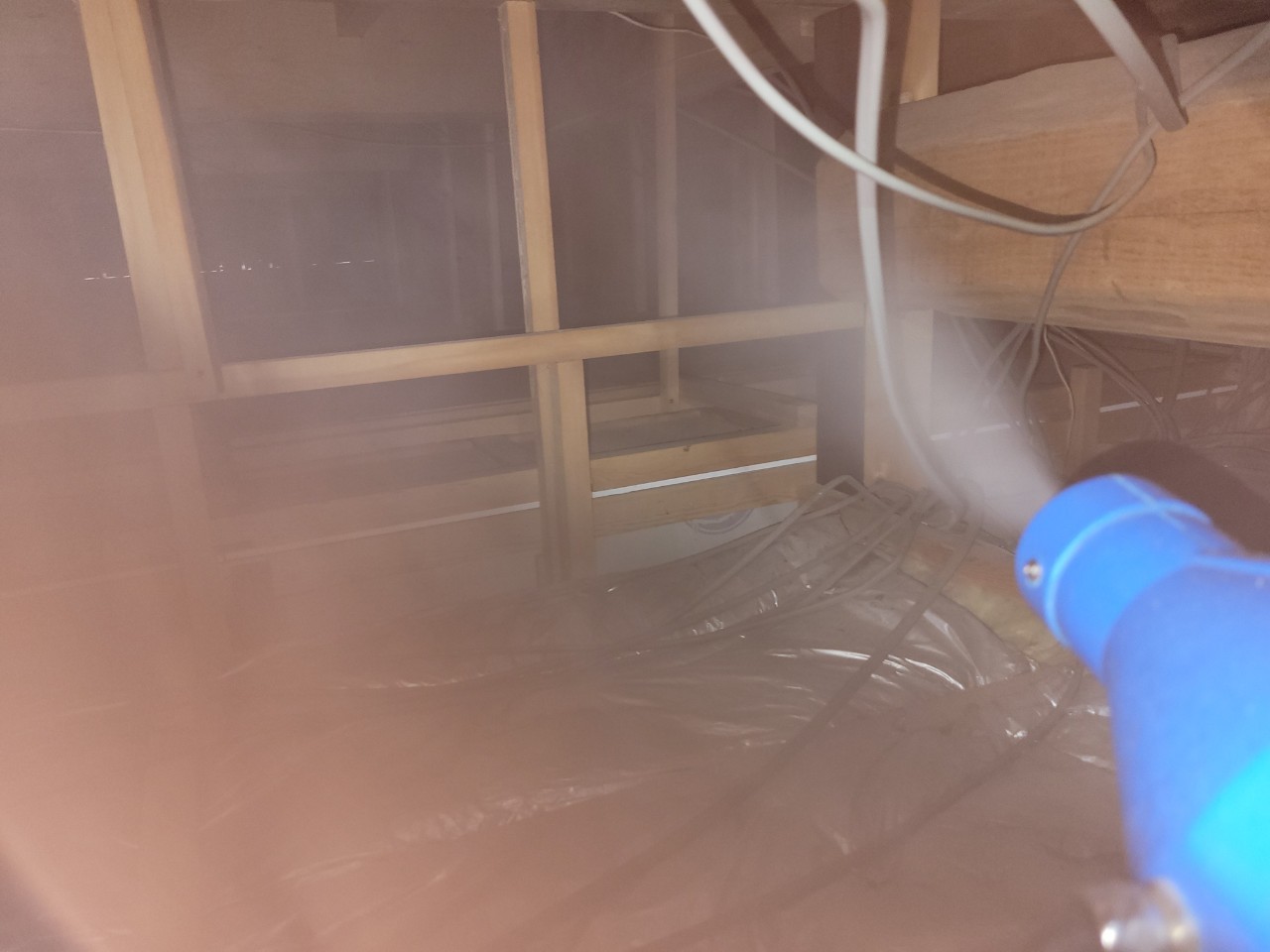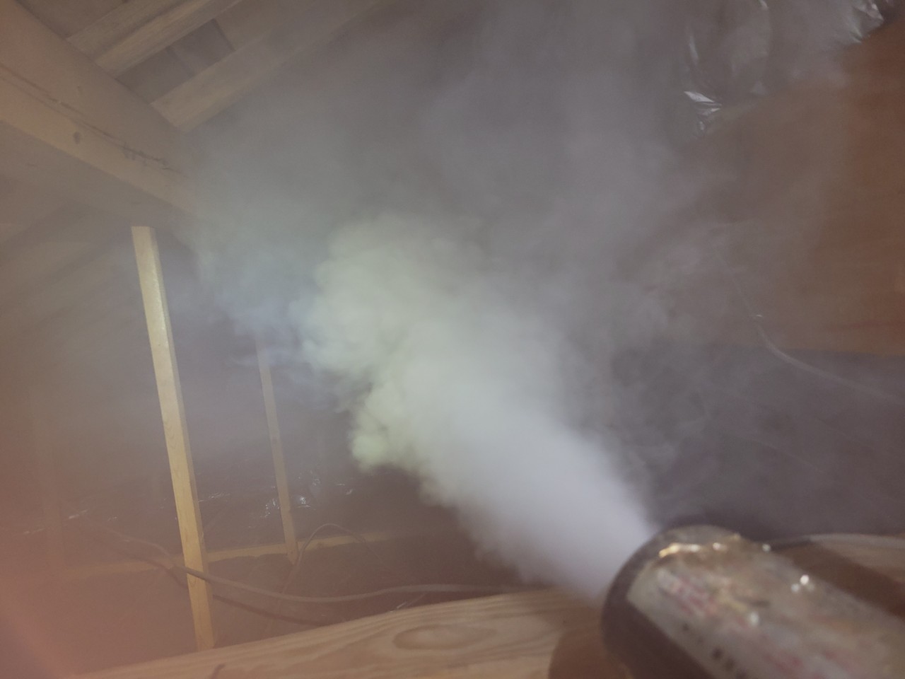 まずは、燻煙剤を使って屋内に潜んでいるアライグマを追い出します。