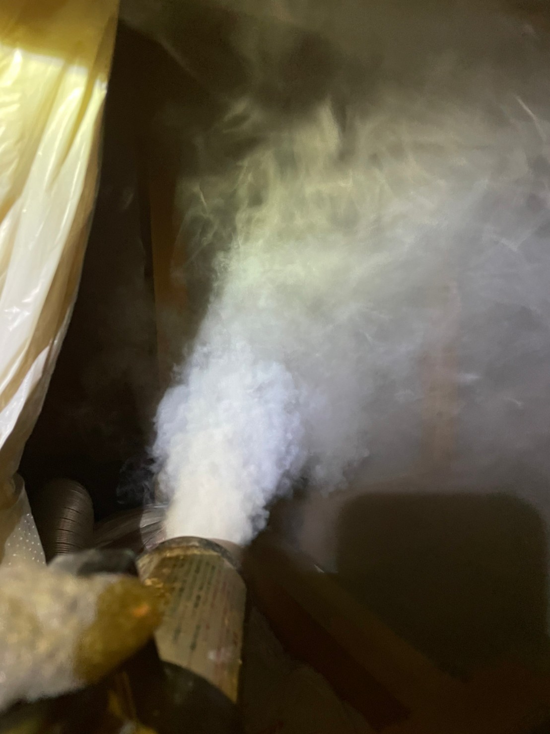 まずは、燻煙剤と呼ばれる薬剤を天井裏や床下に投入することで、コウモリを追い出していきます。