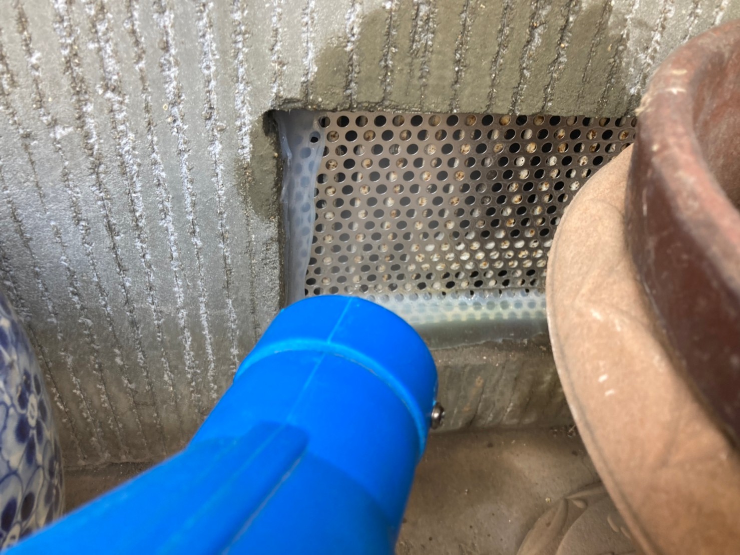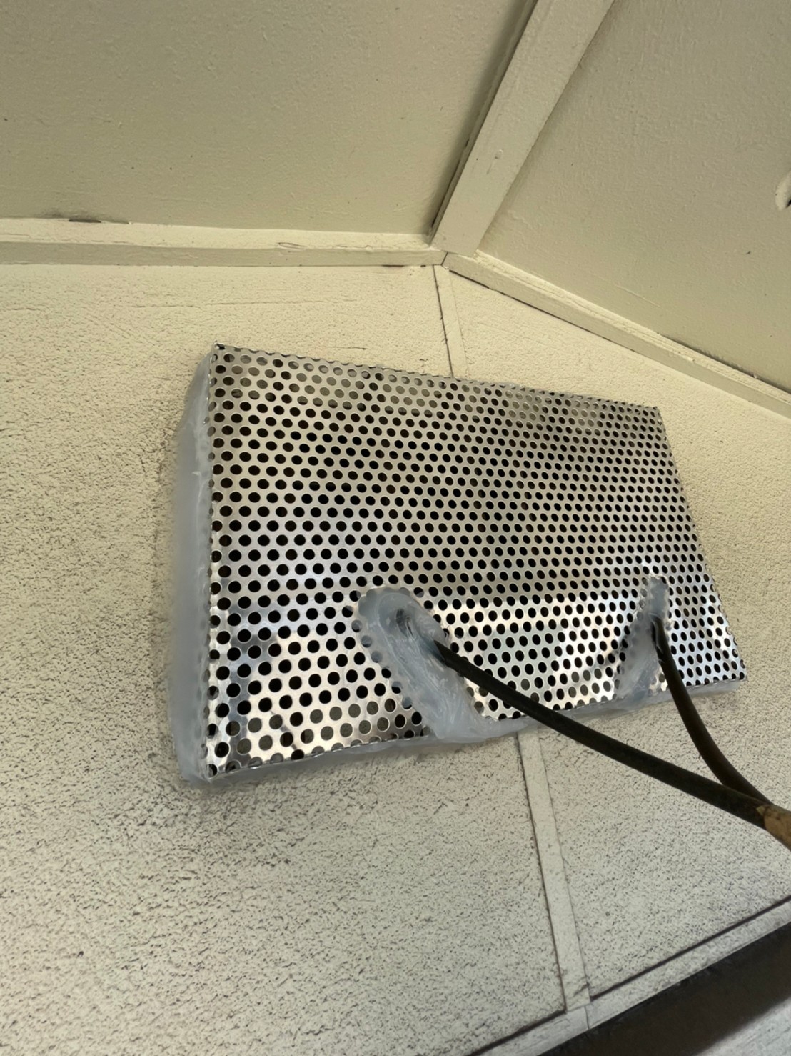 続いて、パンチングメタルや金網、コーキング剤などを用いて、あらゆる侵入経路を封鎖していきます。これによりネズミに限らず、他の害獣の再侵入も防ぐことができます。