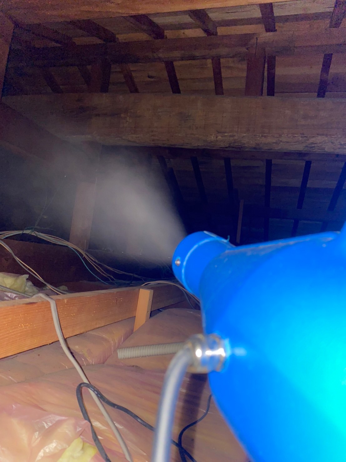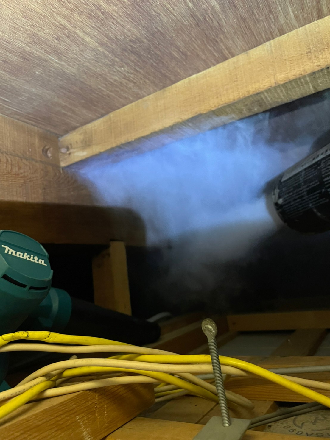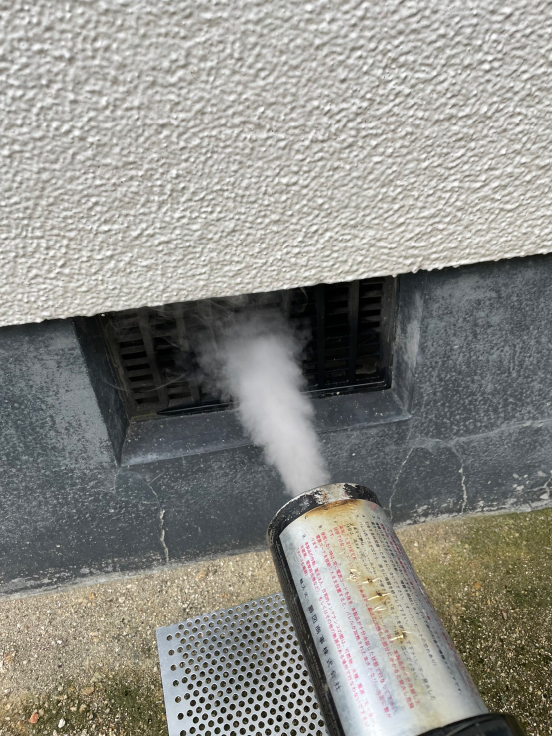 まずは、燻煙剤と呼ばれる薬剤を天井裏や床下に投入することで、ネズミ、イタチを追い出していきます。