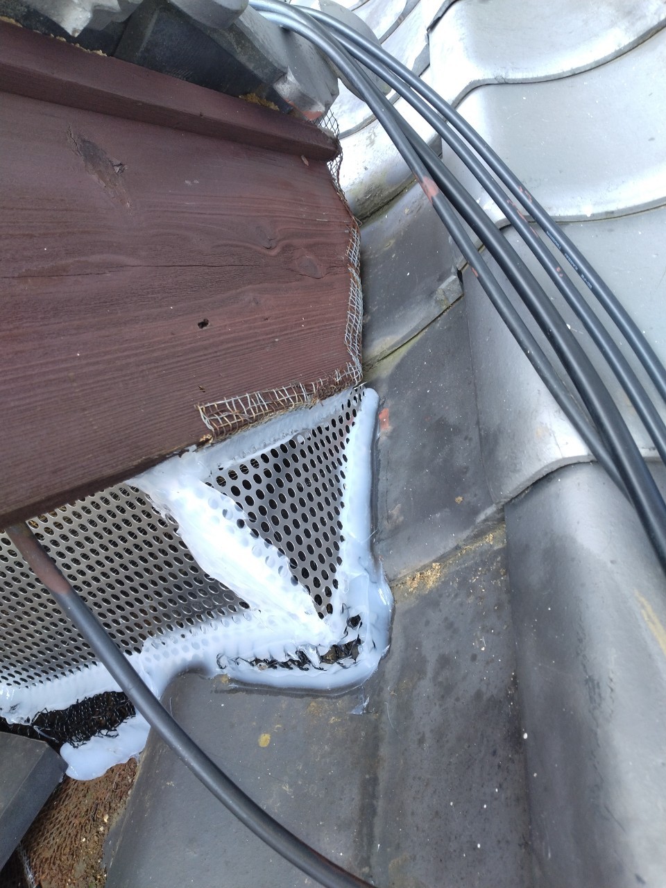 屋根の隙間や瓦の隙間、床下通風口等がネズミ、イタチの侵入経路と疑われました。