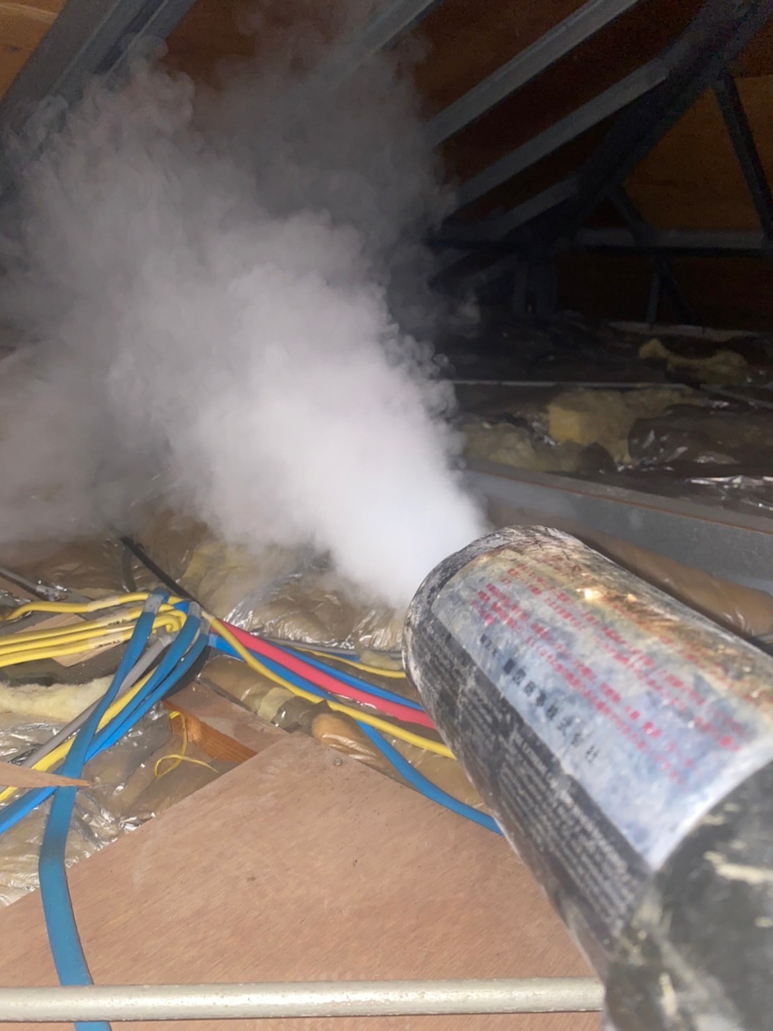 まずは、燻煙剤と呼ばれる薬剤を天井裏や床下に投入することで、コウモリを追い出していきます。