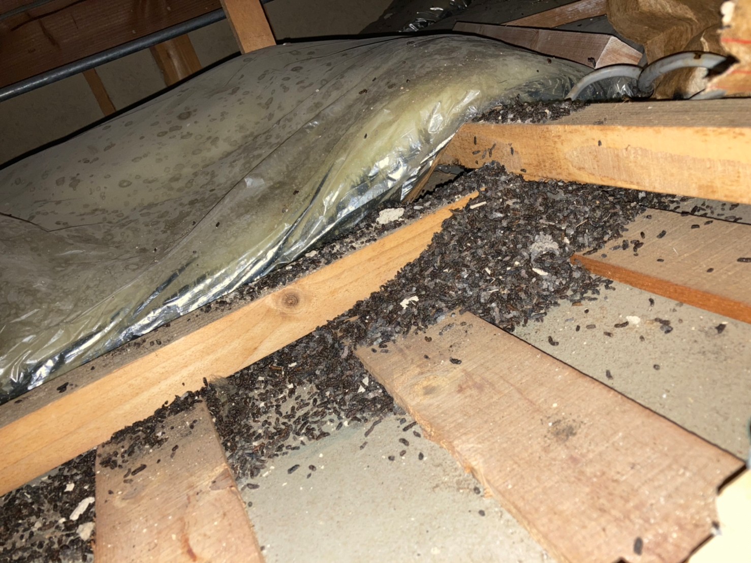 屋根の隙間といった場所から、コウモリが建物内へ侵入しており、不気味な騒音や糞尿による天井の損傷、ノミ・ダニ被害などの理由からお問い合わせをいただきました。