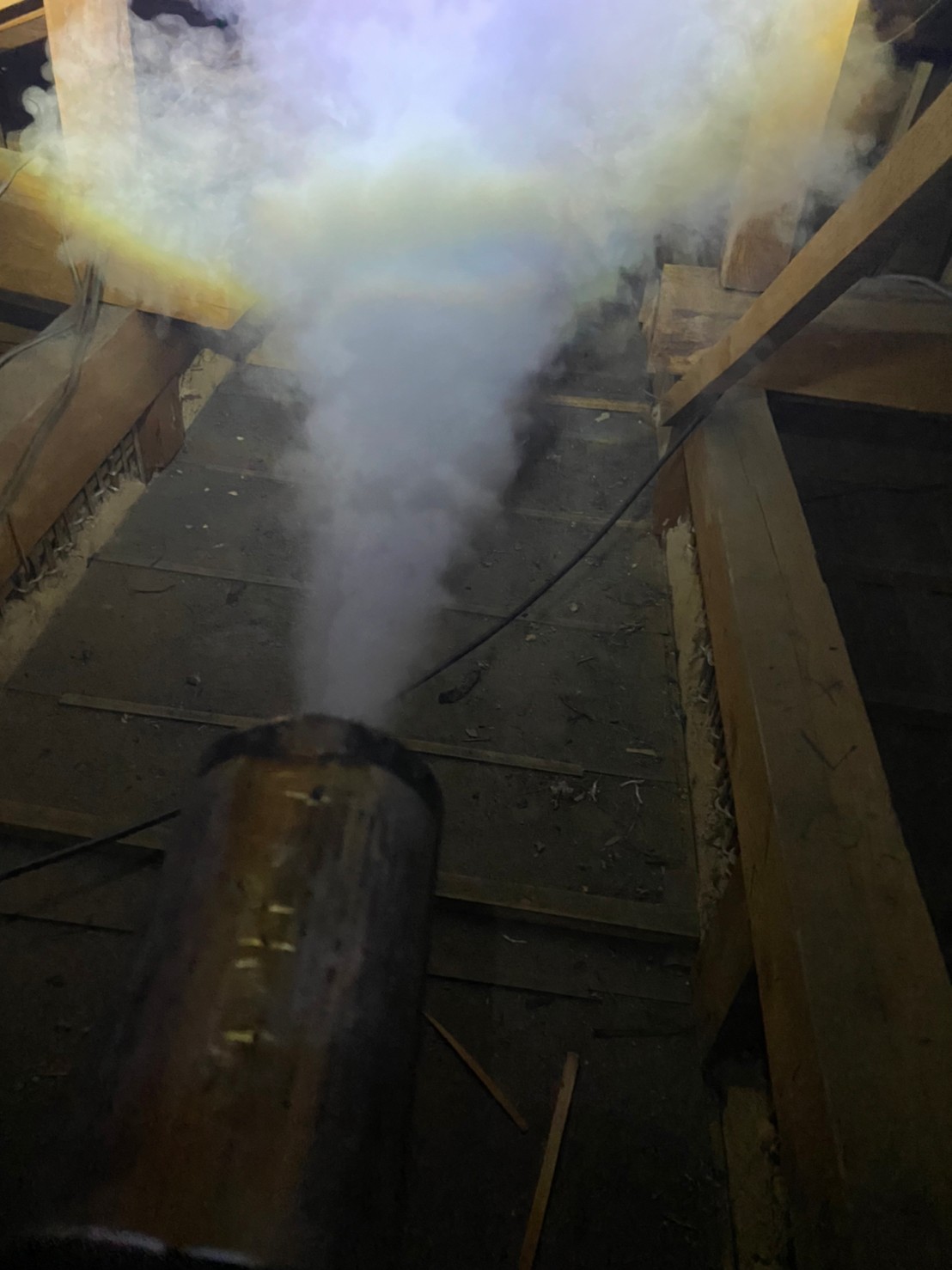 まずは、燻煙剤を使って屋内に潜んでいるコウモリを追い出します。