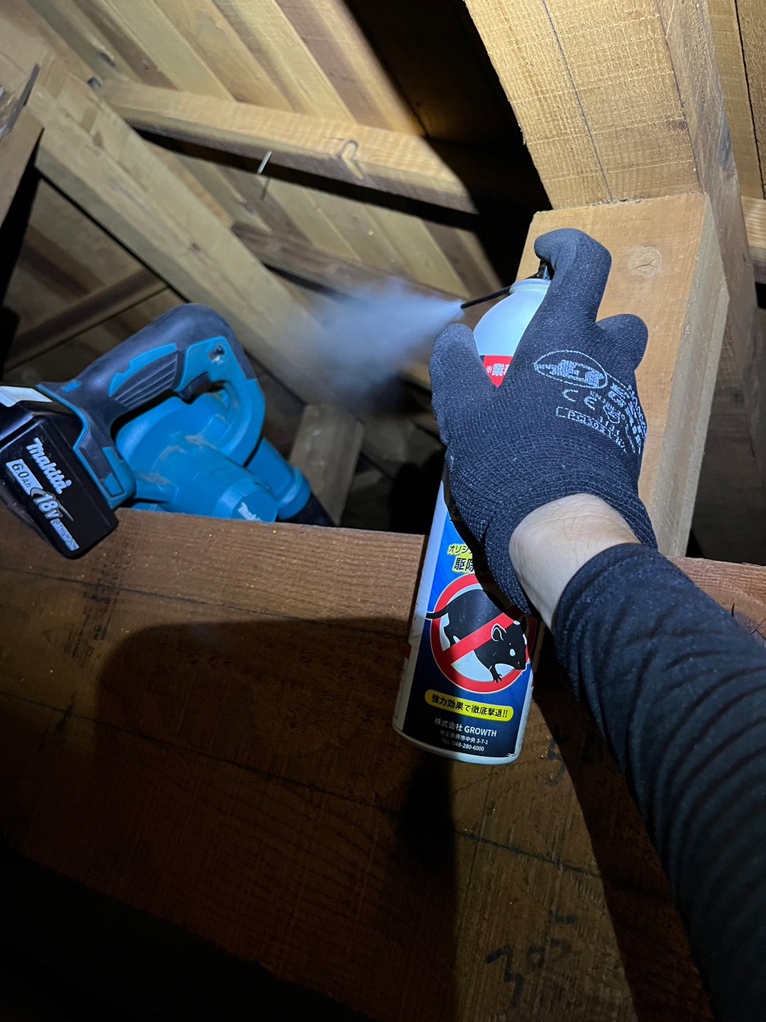 まずは、燻煙剤と呼ばれる薬剤を天井裏や床下に投入することで、イタチを追い出していきます。