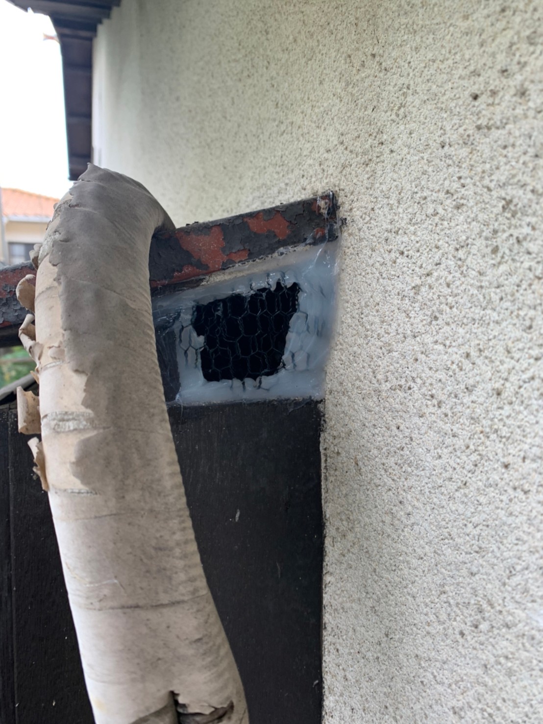 続いて、イタチの再侵入を防ぐために、パンチングメタルや金網、コーキング剤などを用いて侵入経路の封鎖を行います。