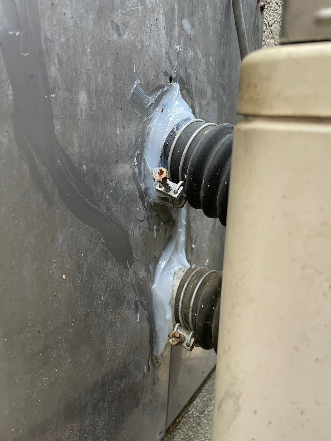 続いて、パンチングメタルや金網、コーキング剤などを用いて、あらゆる侵入経路を封鎖していきます。これによりネズミに限らず、他の害獣の再侵入も防ぐことができます。