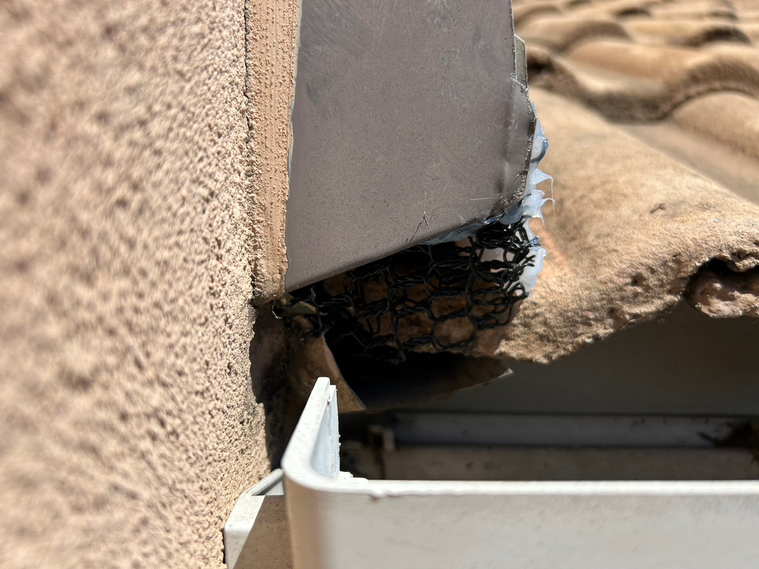 続いて、パンチングメタルや金網、コーキング剤などを用いて、あらゆる侵入経路を封鎖していきます。これによりコウモリに限らず、他の害獣の再侵入も防ぐことができます。
