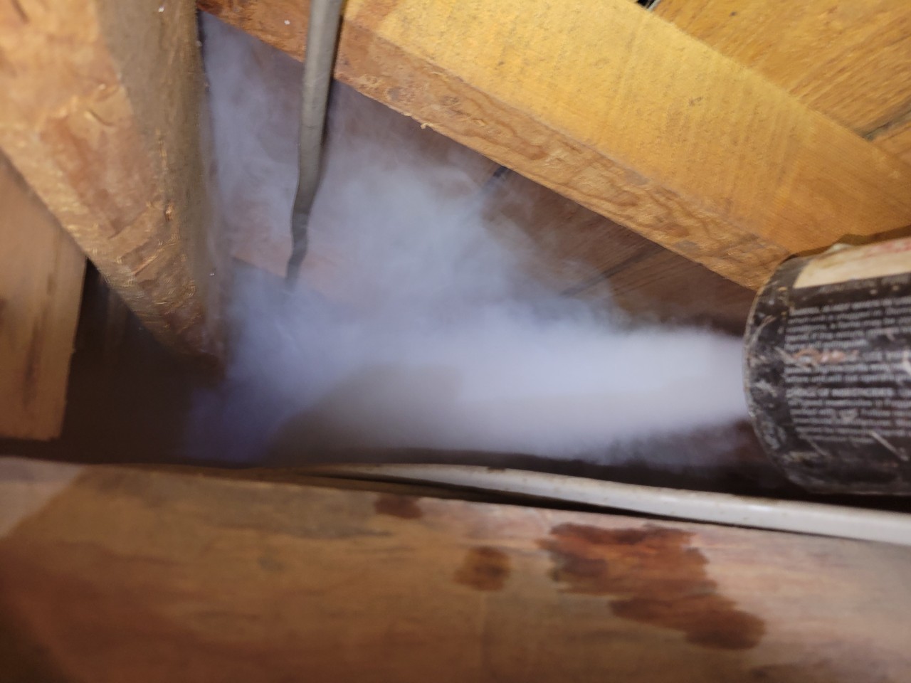 まずは、燻煙剤と呼ばれる薬剤を天井裏や床下に投入することで、アライグマを追い出していきます。