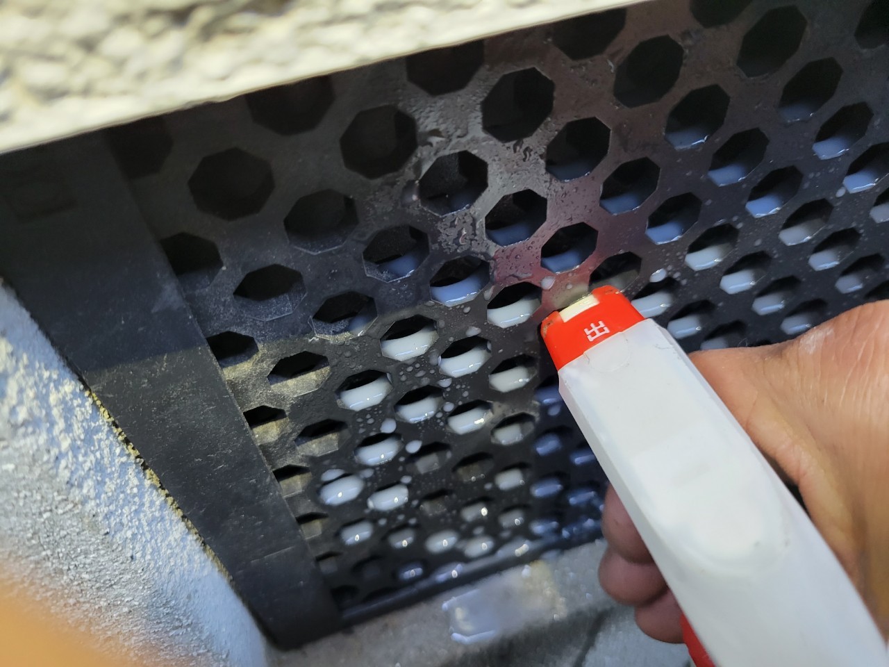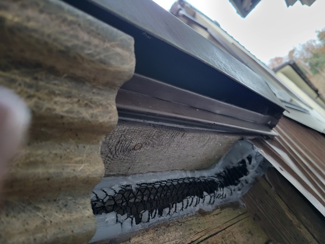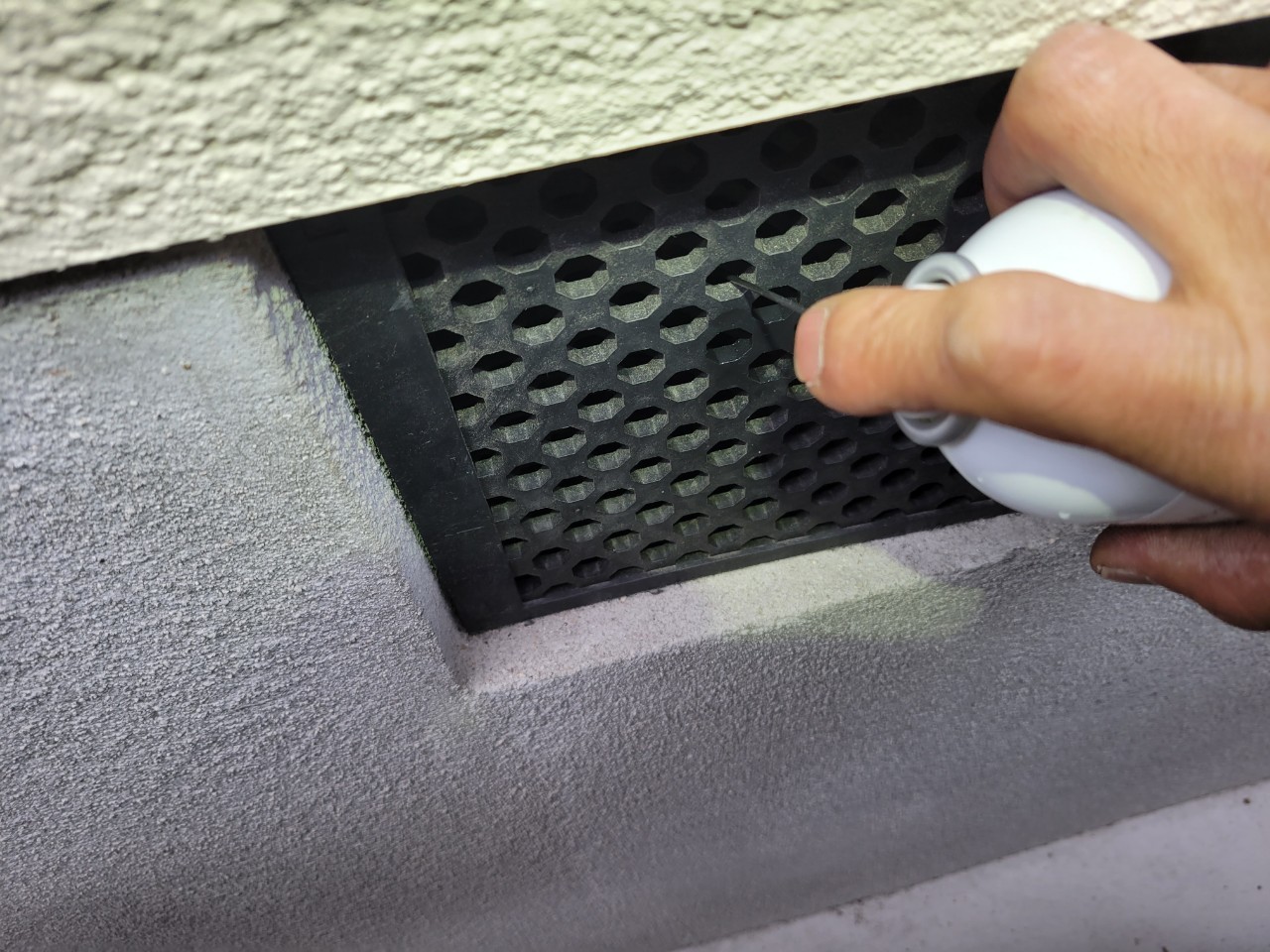 続いて、パンチングメタルや金網、コーキング剤などを用いて、あらゆる侵入経路を封鎖していきます。これによりネズミに限らず、他の害獣の再侵入も防ぐことができます。