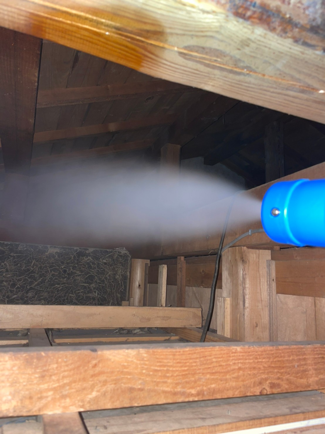 まずは、燻煙剤を使って屋内に潜んでいるアライグマを追い出します。